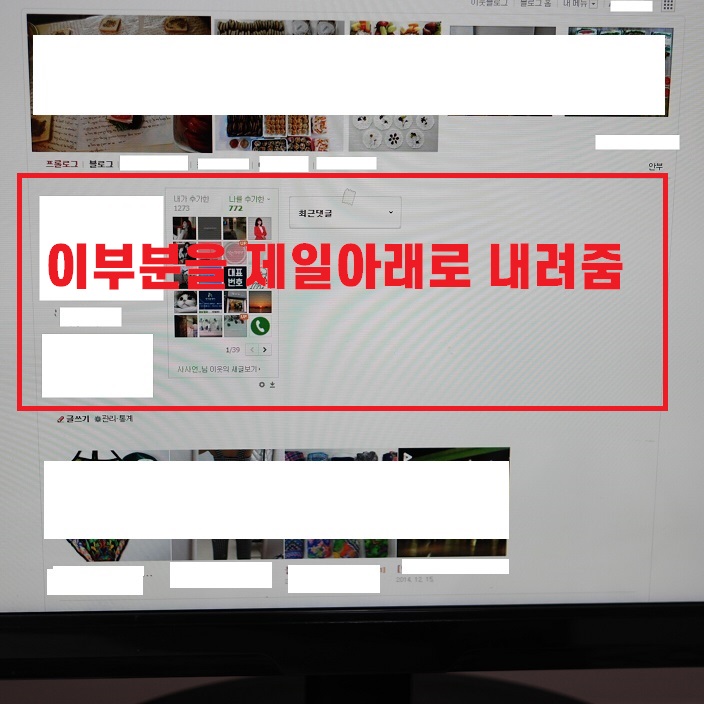 먼저 페이지를 깔끔하게 보이려면 관리 > 꾸미기설정 > 레이아웃 위젯 설정하기로 가서 오른쪽 상단 1단계 네모박스를 설정해두세요. 위사진에 메뉴형태아래 보이는 네개의 위젯들은 모두 아래로 내려줍니다