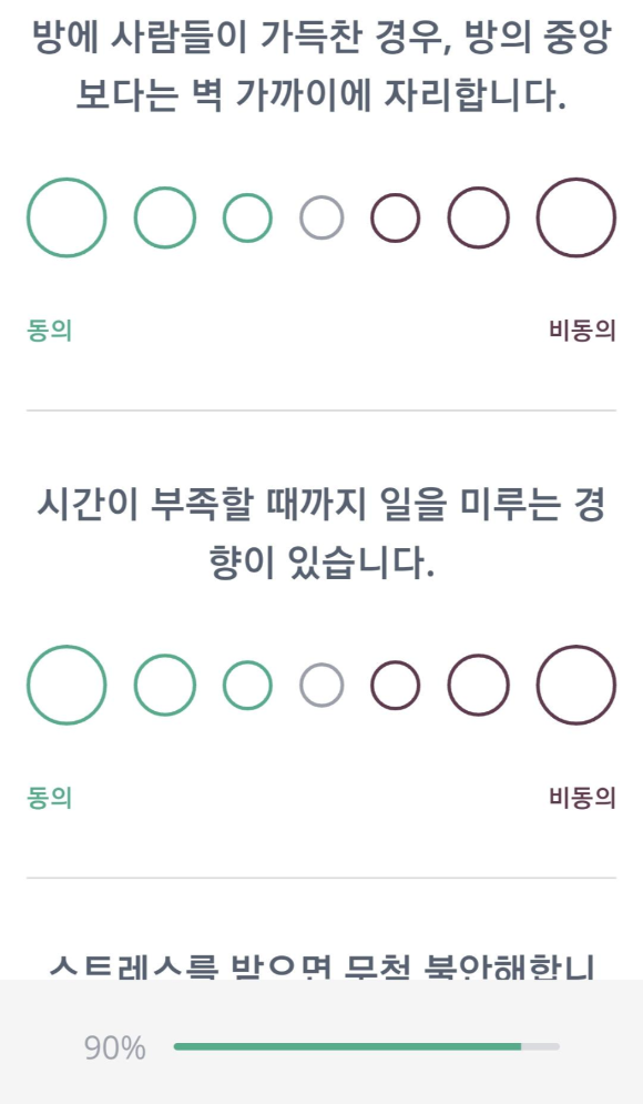 생각보다 질문이 많아서 예 아니오를 빠르게 선택하세요