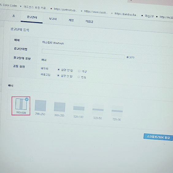 배너를 선택하면 스크립트를 복사해서 두세요
