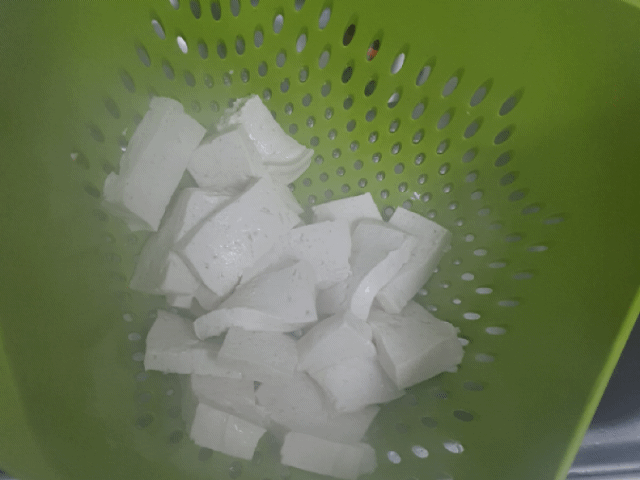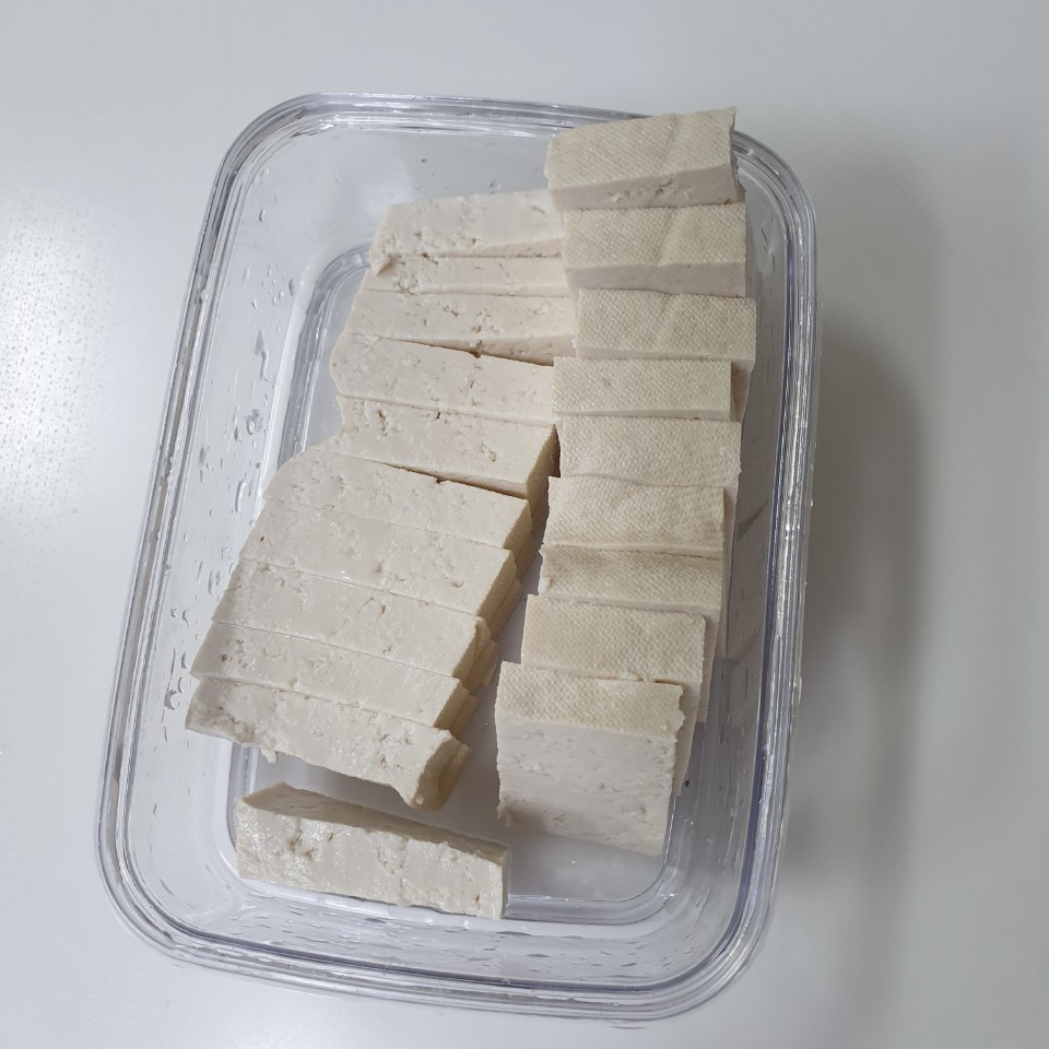 두부를 먹기좋은 크기로 잘라줍니다. 먼저썰어놓는 이유는