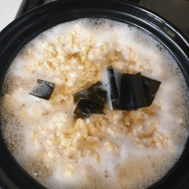 순두부 같은 느낌이 들때 쯔유를 조금 부어줍니다. 명란젓에서 기본적으로 간이 짜므로 쯔유만 넣어줘도 풍부한 맛이 난답니다. 다시마도 같이 추가합니다.
