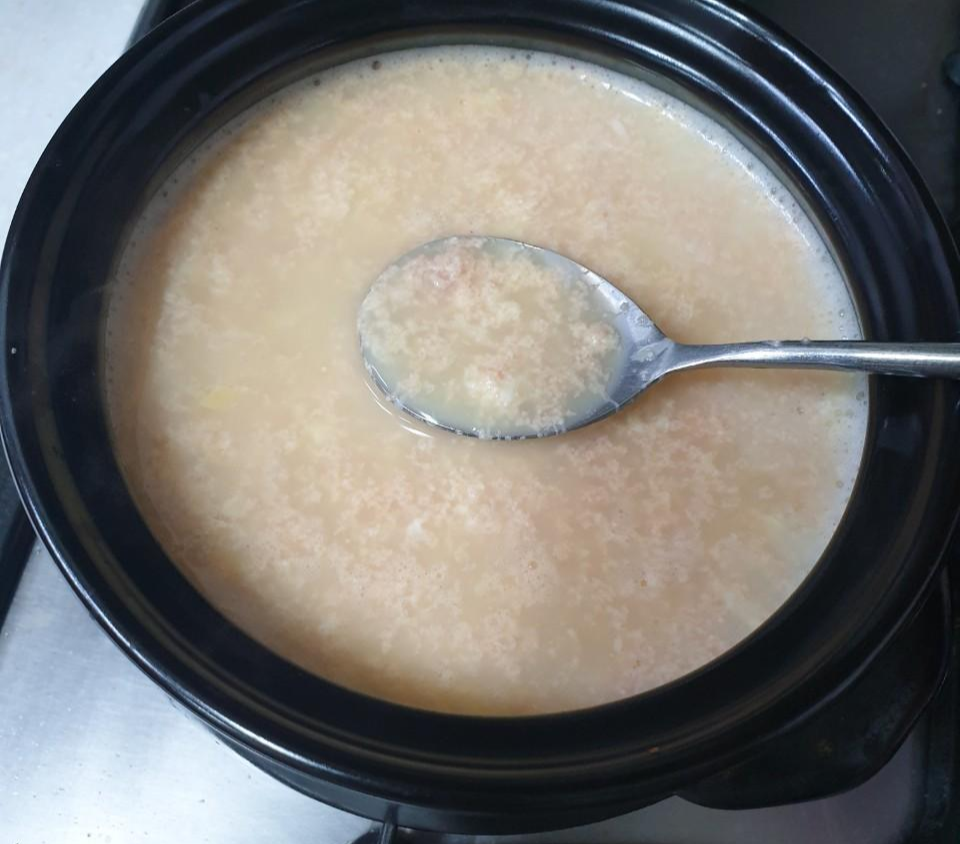 커피포트에 뜨거운물을 끓여 부어주며 명란을 풀어줍니다.