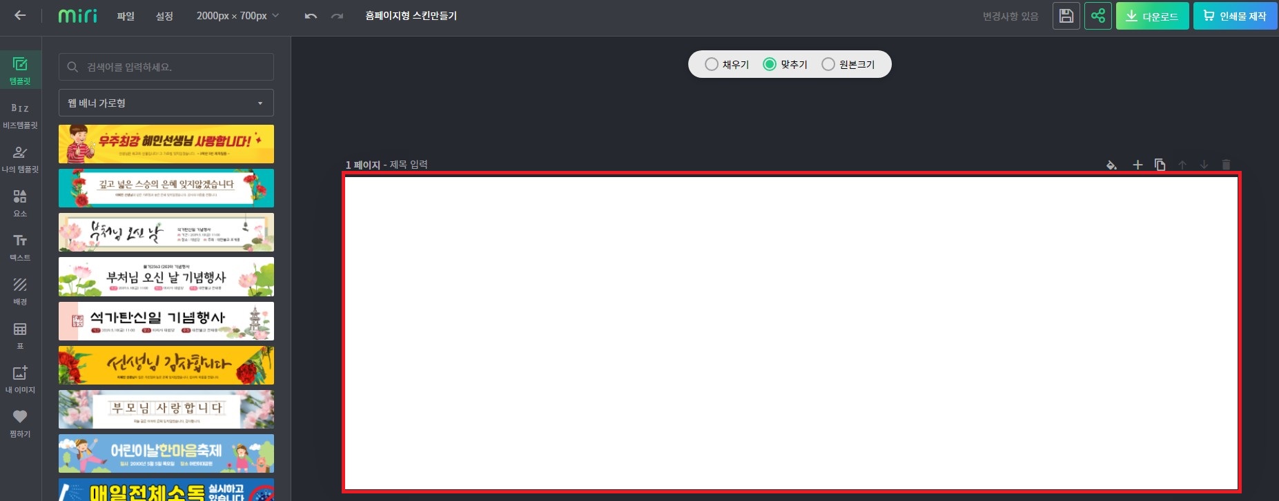 가로 2000 X700 사이즈로 설정해 주세요