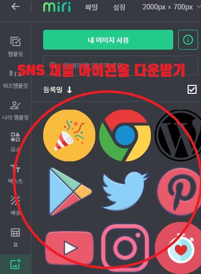 아이콘을 다운받았으면 내파일불러오기로 미리캔버스에 불러오기를 해두세요
