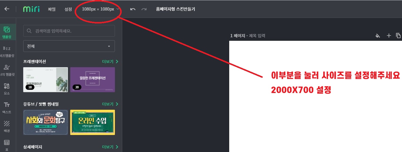 위의 미리캔버스를 열어 블로그 화면 사이즈를 입력해 주세요