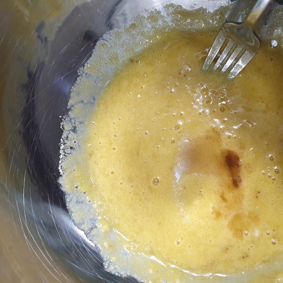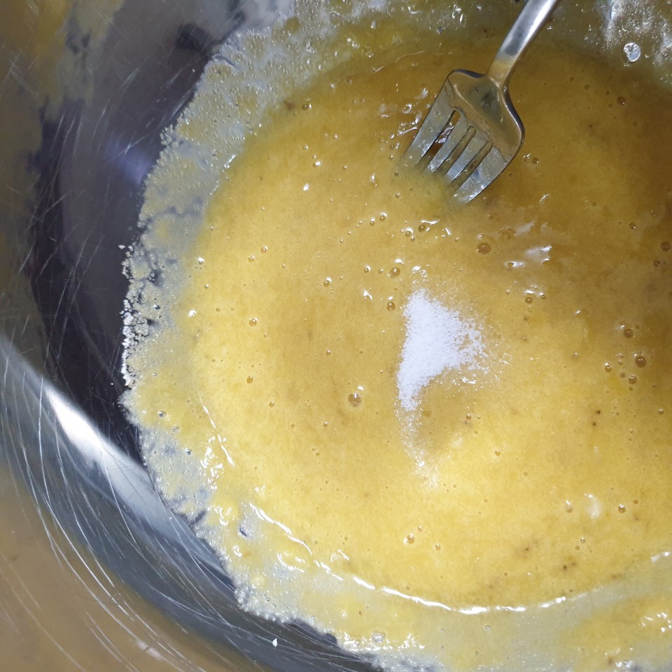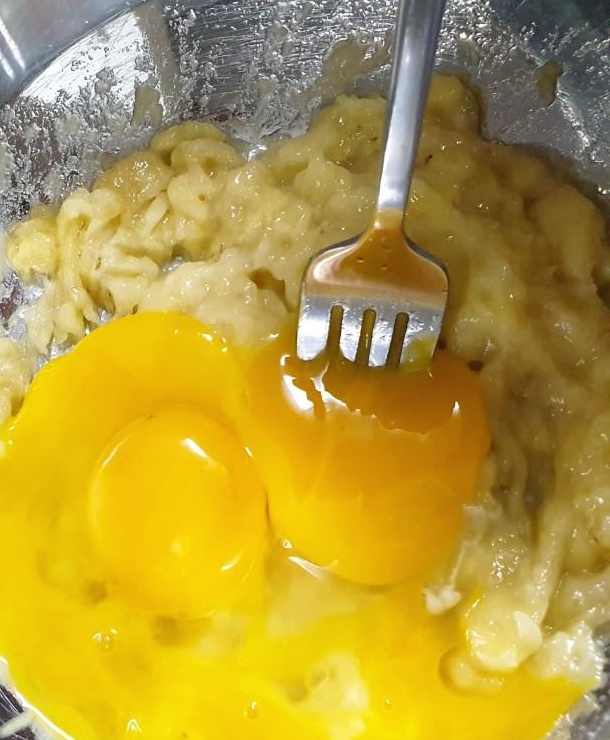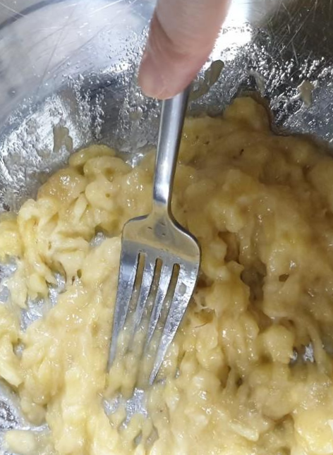 바나나를 으깨줍니다. 계란노른자 세개도 같이 풀어줍니다.