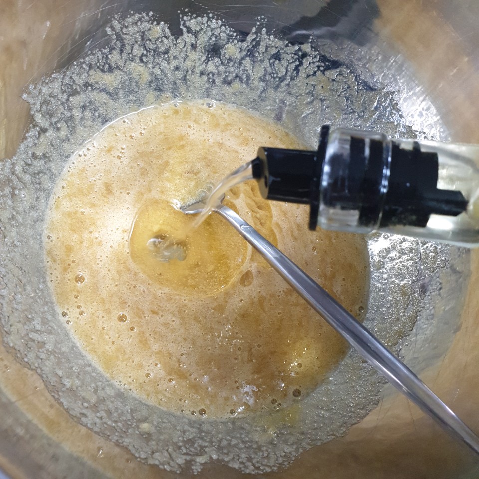 설탕을 풀어줍니다. 소금과 바닐라 에센스도 같이 넣어줍니다.