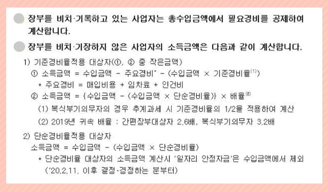 소득과 지출부분을 신고하시고 3.3프로의 수수료를 뗀 수입과 지출증빙 확인이 필요합니다.