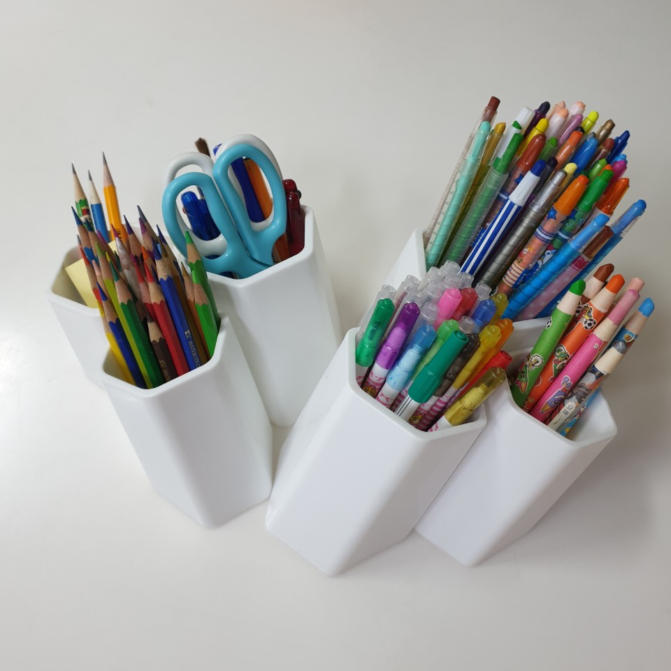 연필꽂이 색깔이 흰색이라 문구류를 꽂아놓으면 아주 깔끔하고 심플합니다.