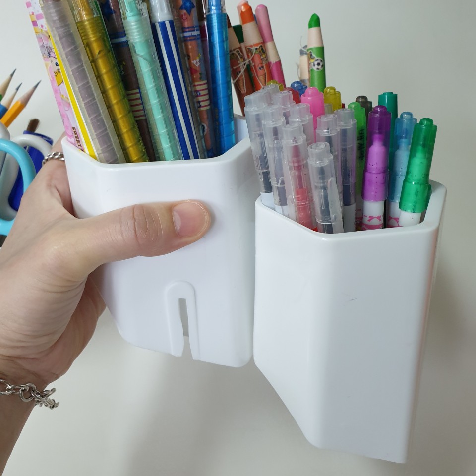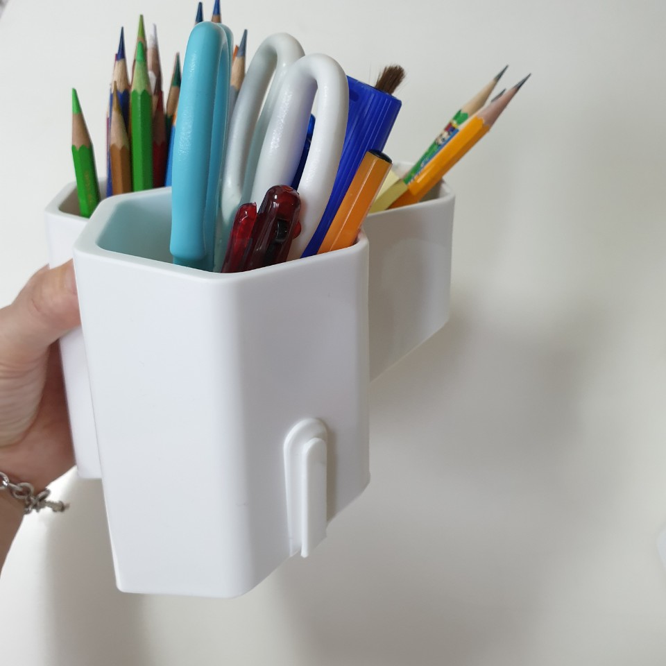 공간이 좁아도 넓어도 두칸을 뗀 상태에서 연필꽂이를 좁혀주면 시각적으로도 예뻐서 아이들이 그림놀이를 할때 연필꽂이가 예쁘다고 손이 자주간다고 얘기합니다.