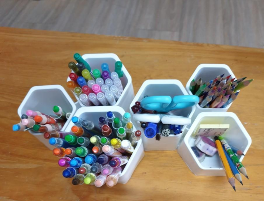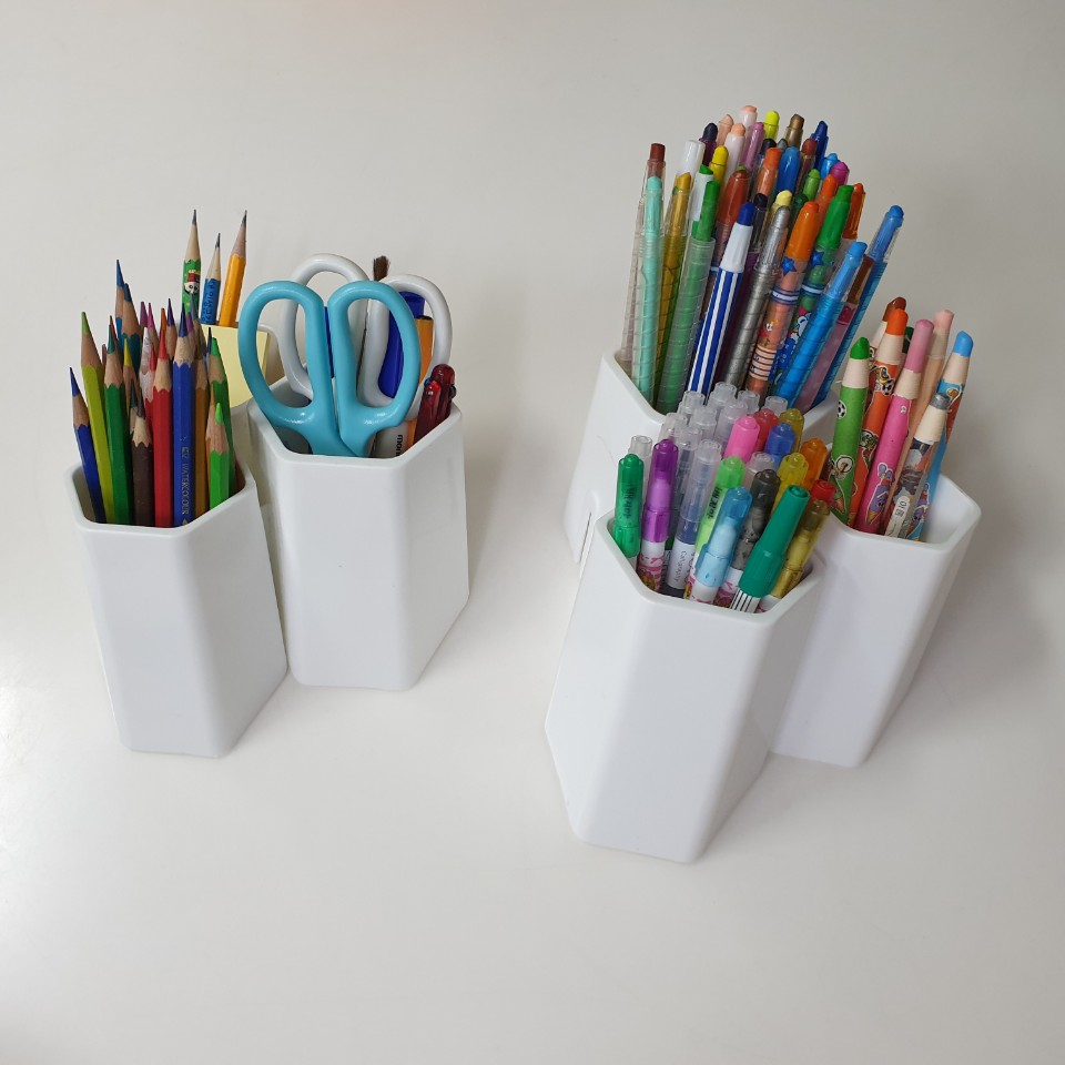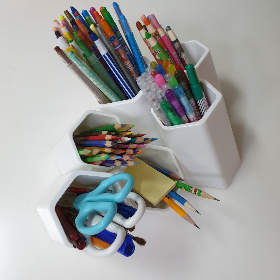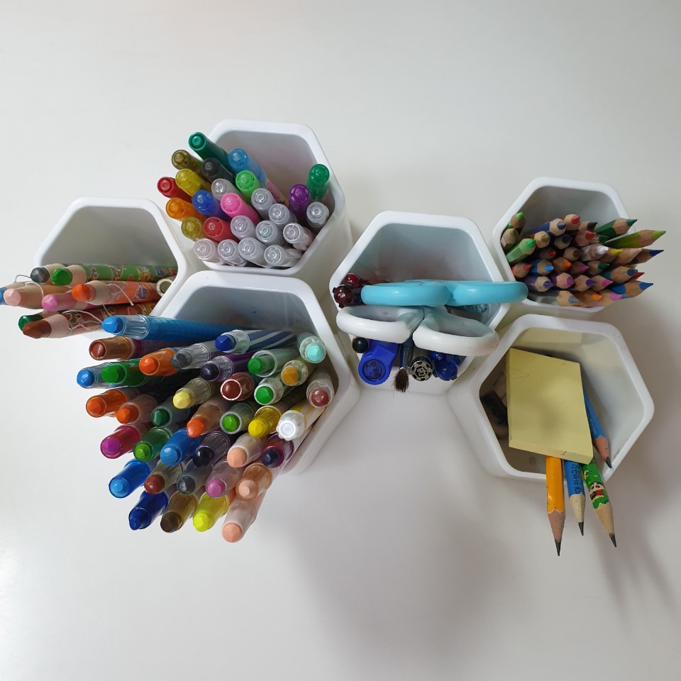 제가 구입한 허니콤 연필꽂이는 일단 정리할때 자주쓰는 색연필과 싸인펜 가위류와 메모지 풀등 각각 수납할수 있는공간이 넓었습니다. 사실이렇게 정리를 해서 넣어 놓아도 아이들이 쓰다가 마구마구 넣다보면 다시 정리해야하는 경우도 종종 생기기도 하죠. 아이들이 둘이상일때는 분리를 할수 있도록 되어있어 뚝잘라 하나씩 나눠주기도 합니다.