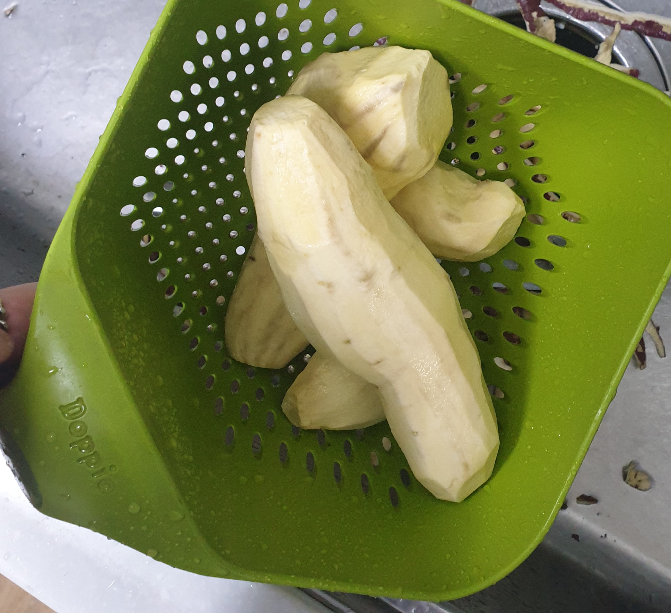 1.고구마를 씻어서 껍질을 제거한다