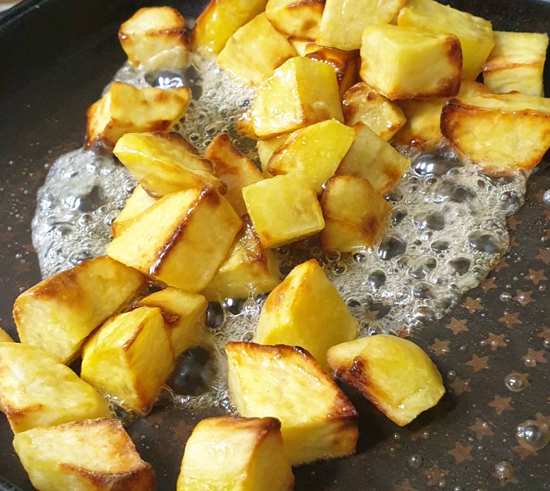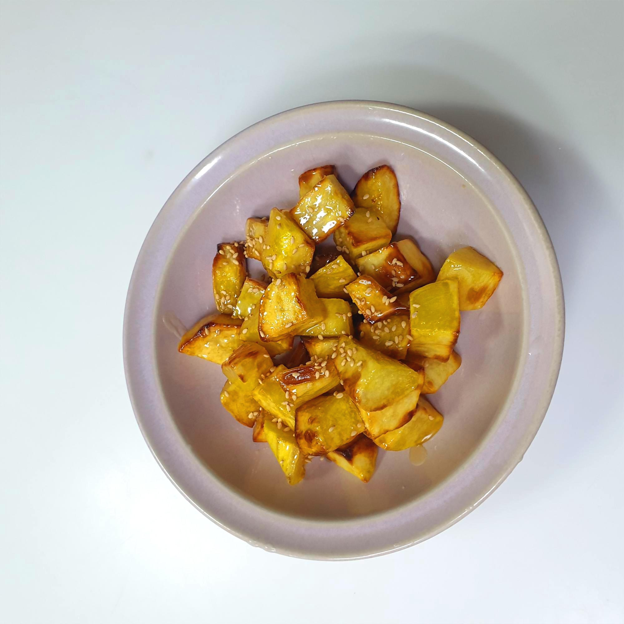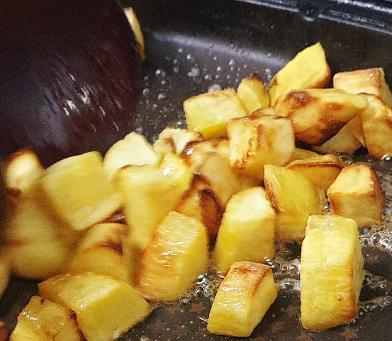 (전자렌지로 고구마를 익히신분들은 후라이팬에다 기름 살짝 두르고 고구마를 튀기듣이 튀겨준다)