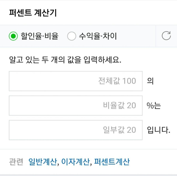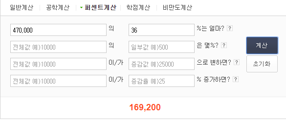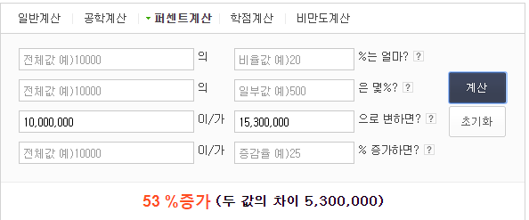 네이버 퍼센트계산기를 보시면 퍼센트 계산으로 위에 나온 숫자들을 계산해 봅니다.