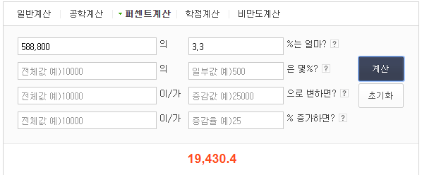 알바를 하고 주급을 588,800원을 받았다고 가정해 봅시다. 수수료 3.3%를 떼어야 한다면
