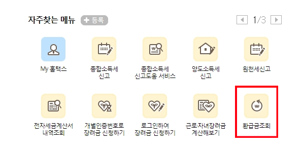 자주찾는 메뉴에서 환급금 조회를 누르시면 된답니다.