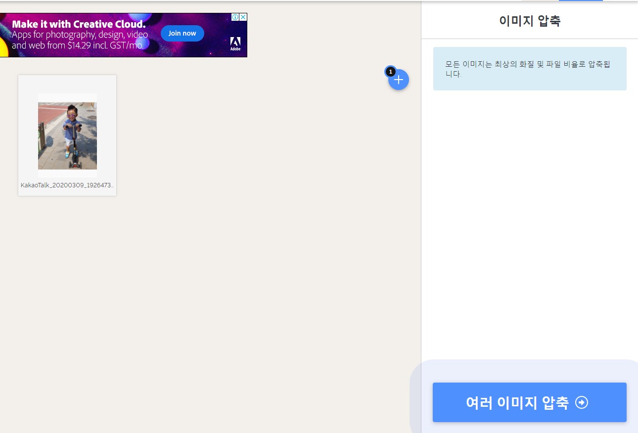 이미지 압축을 누르면 여러이미지 선택이 나옵니다 여러장 사용가능합니다