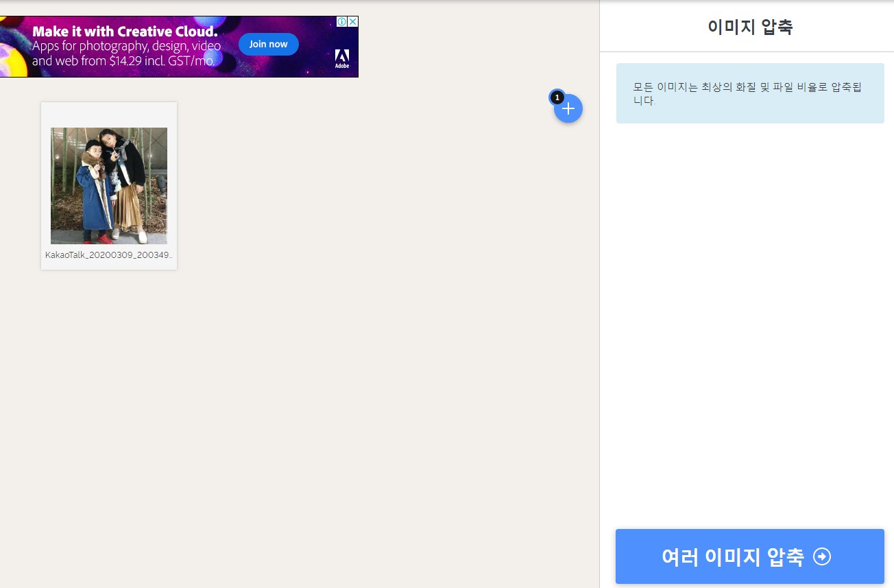 사진을 선택하시면 여러이미지 압축을 눌러줍니다