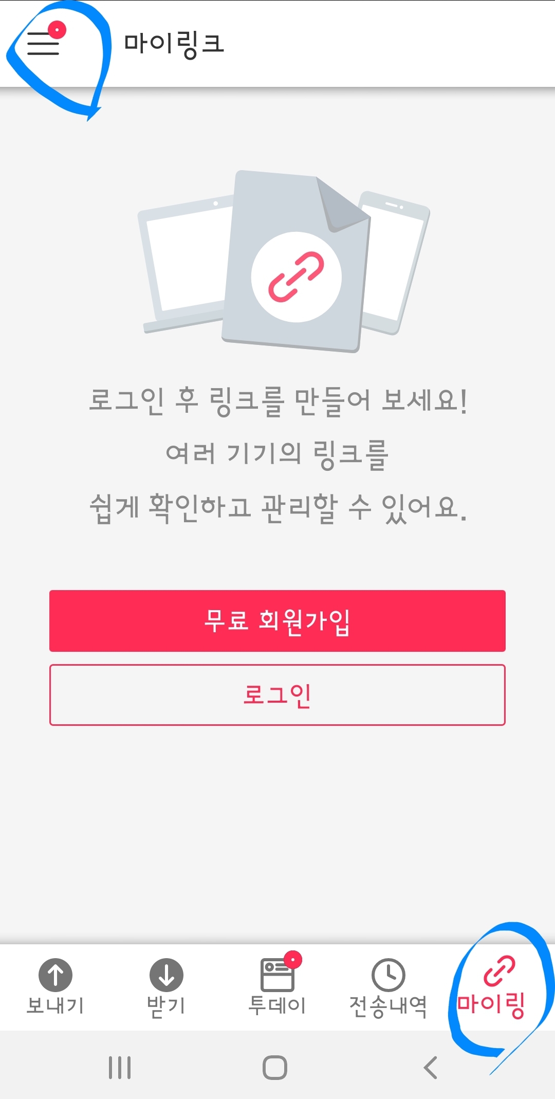 하단우측에 마이링크를 누르시면 다음화면에서 링크보내기 기능이 있어요