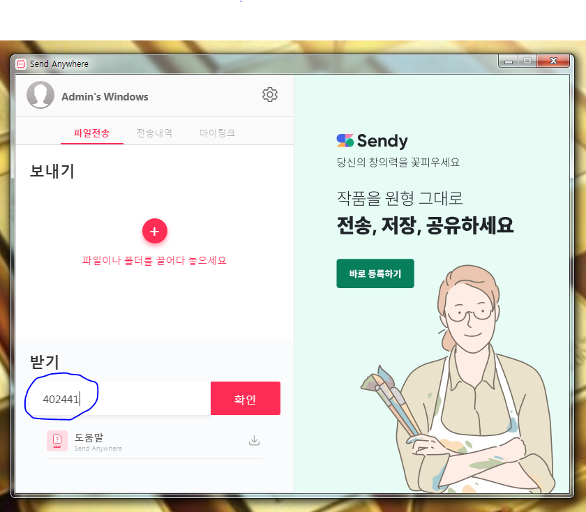 바로 전송이 안되는데요 샌드애니웨어로 바로 보낼수 있어 다행이예요