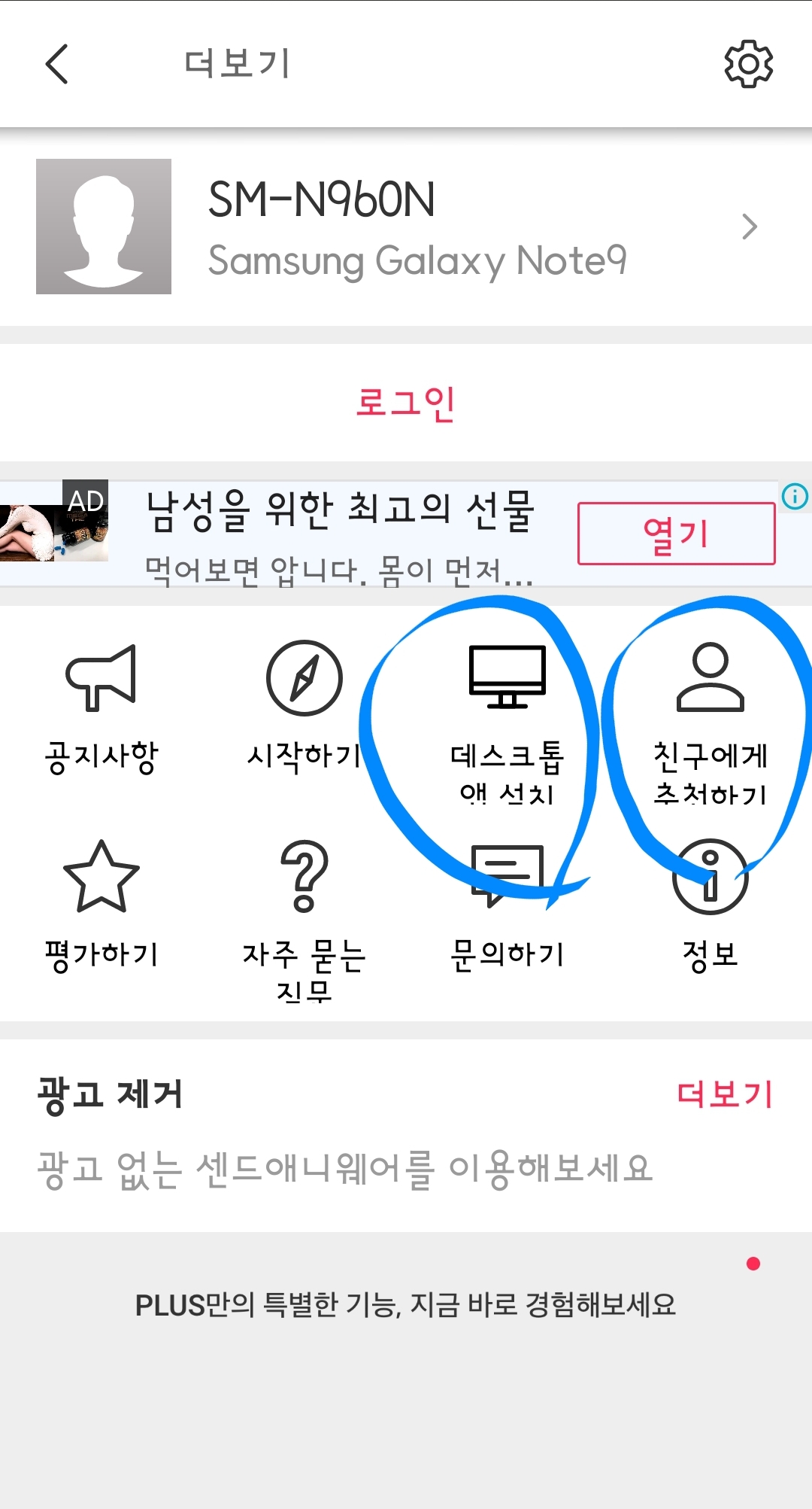 친구에게 보내기와 데스크톱앱설치하기 버튼을 누르시고 지인이나 급할때 공용컴퓨터를 써야할때 이용하