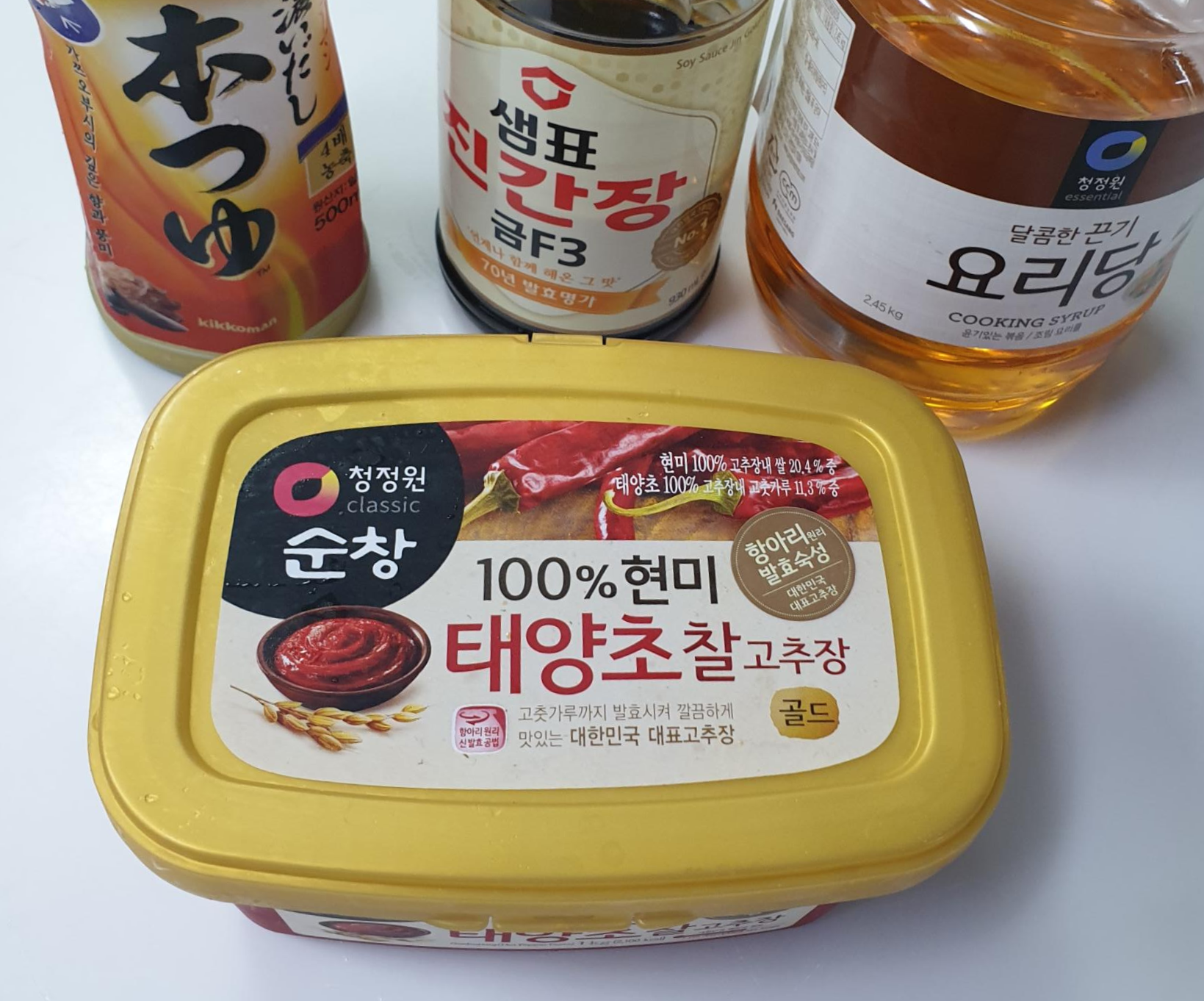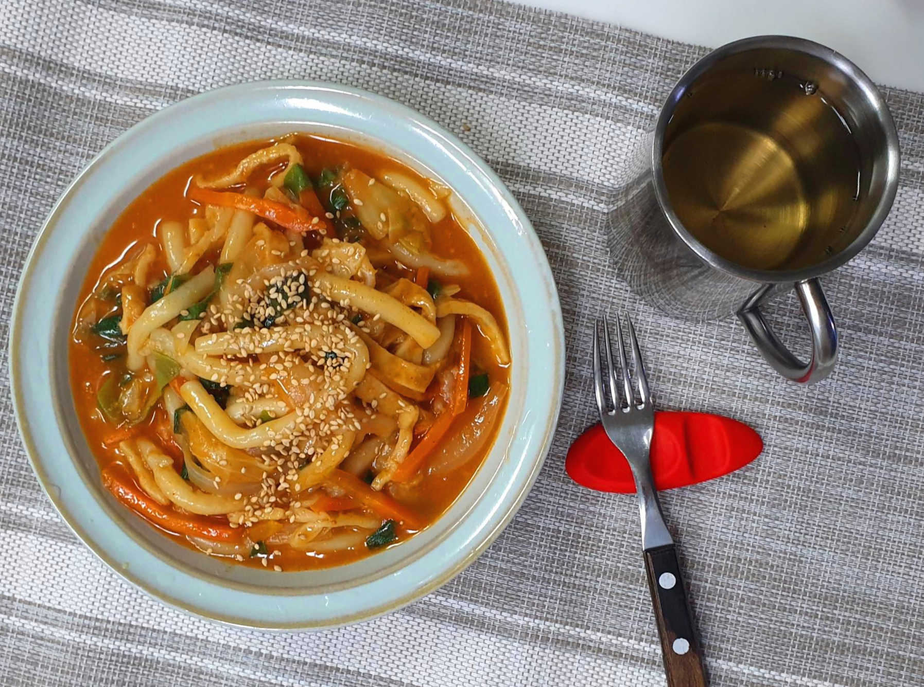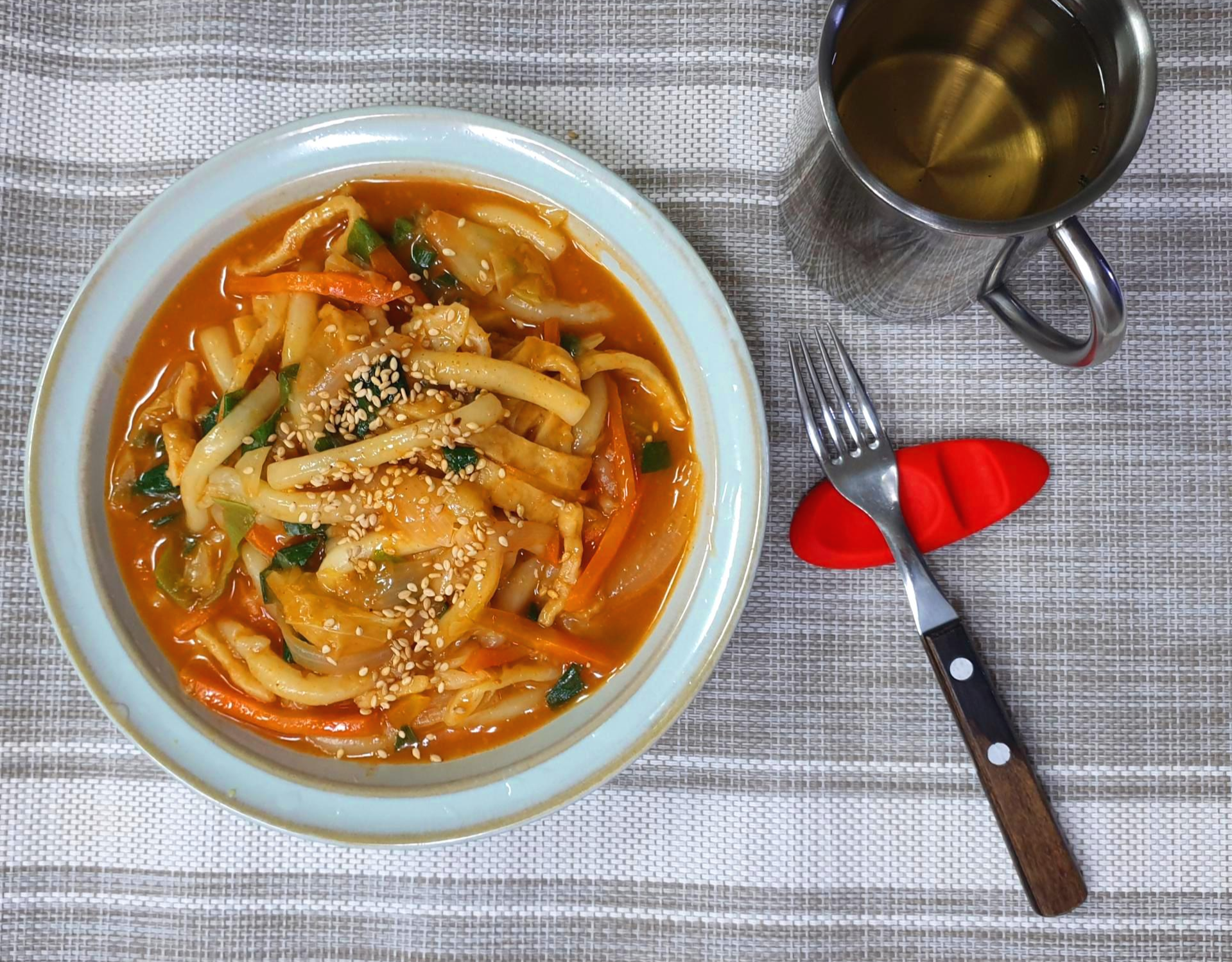 재료: 떡,어묵,양파,당근,양배추,파,간장,쯔유,물엿,고추장