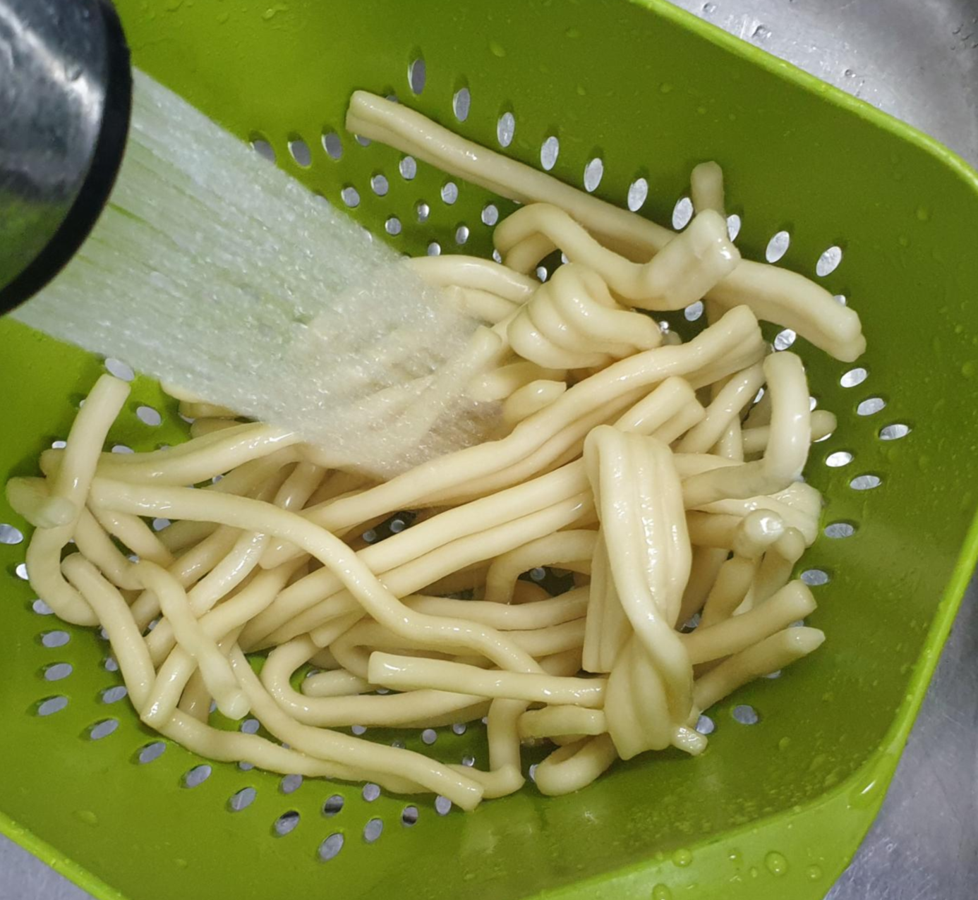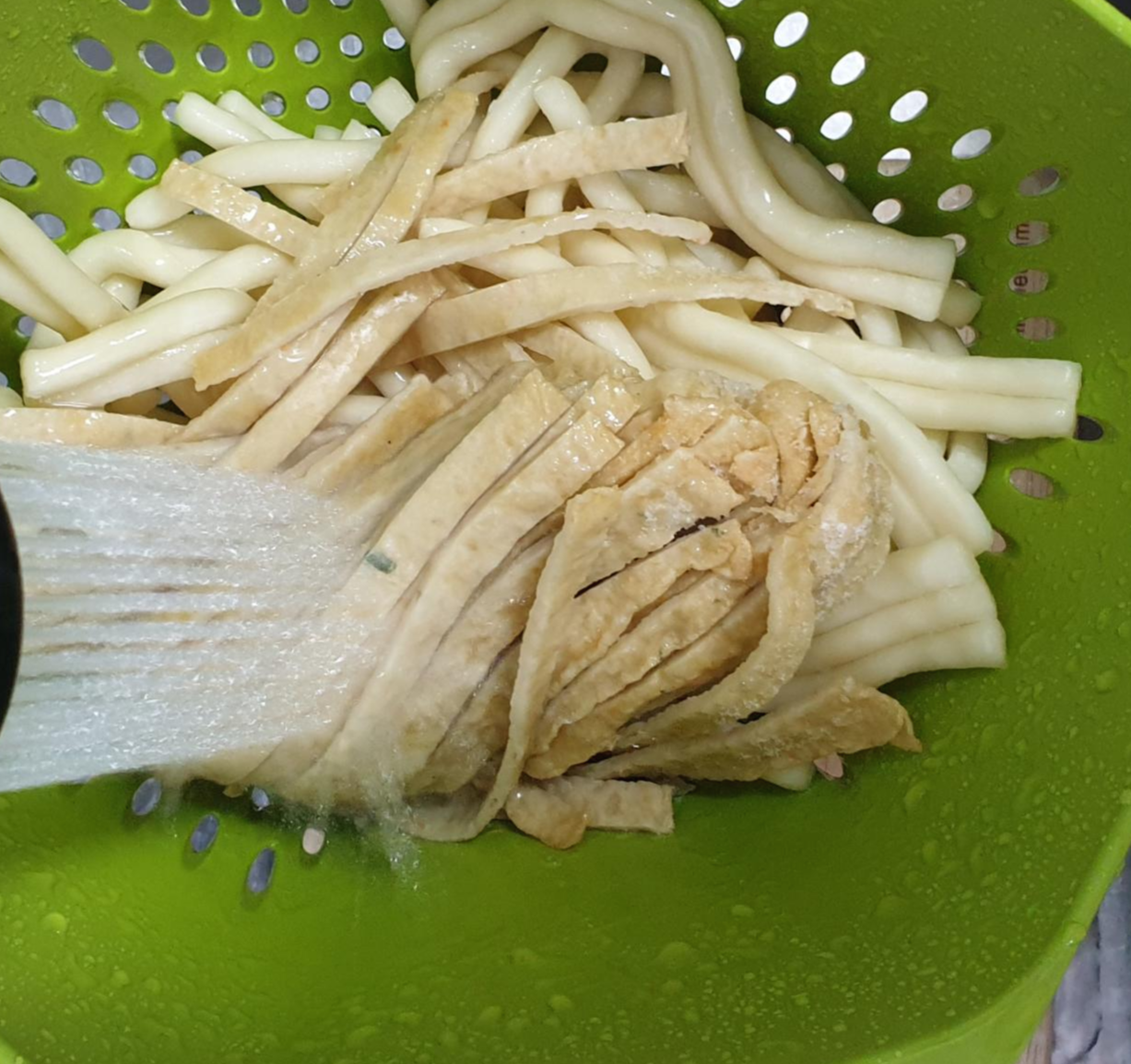 1.떡과 어묵을 채에 받쳐 씻어놓습니다