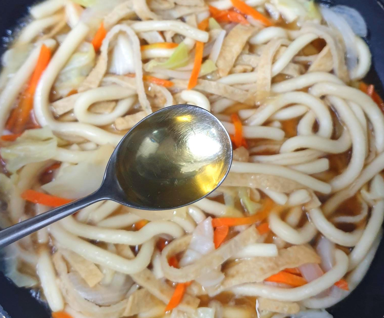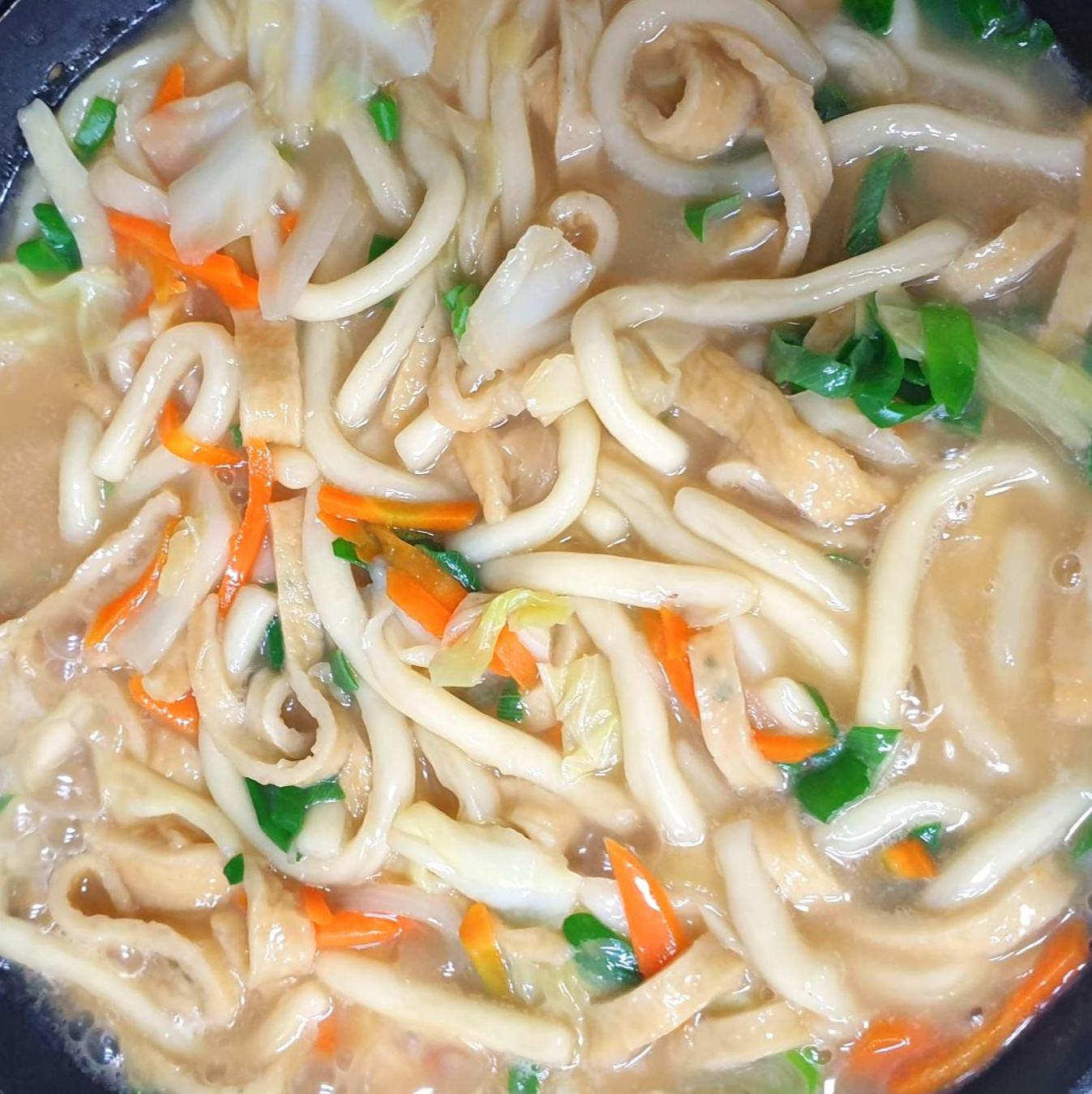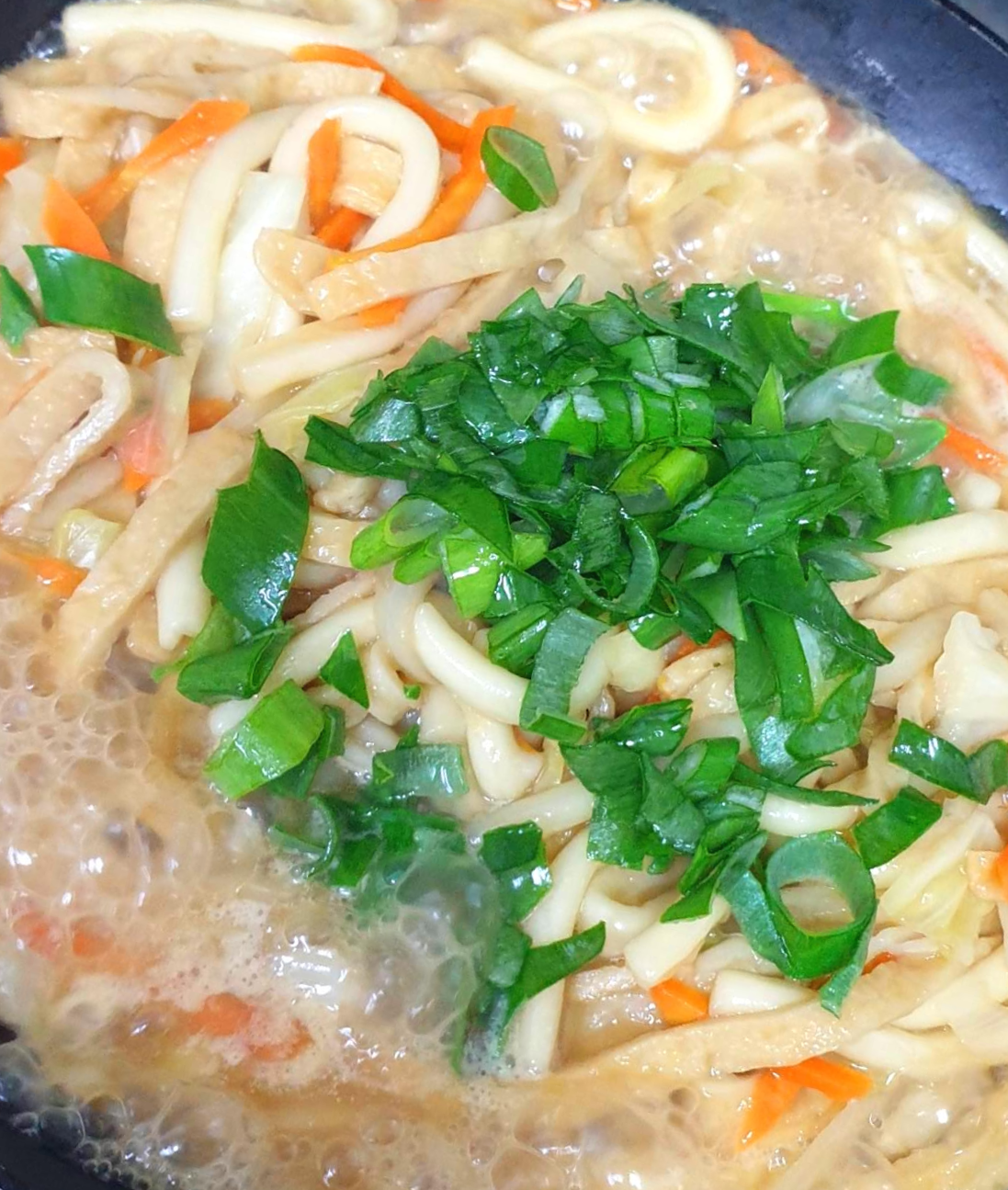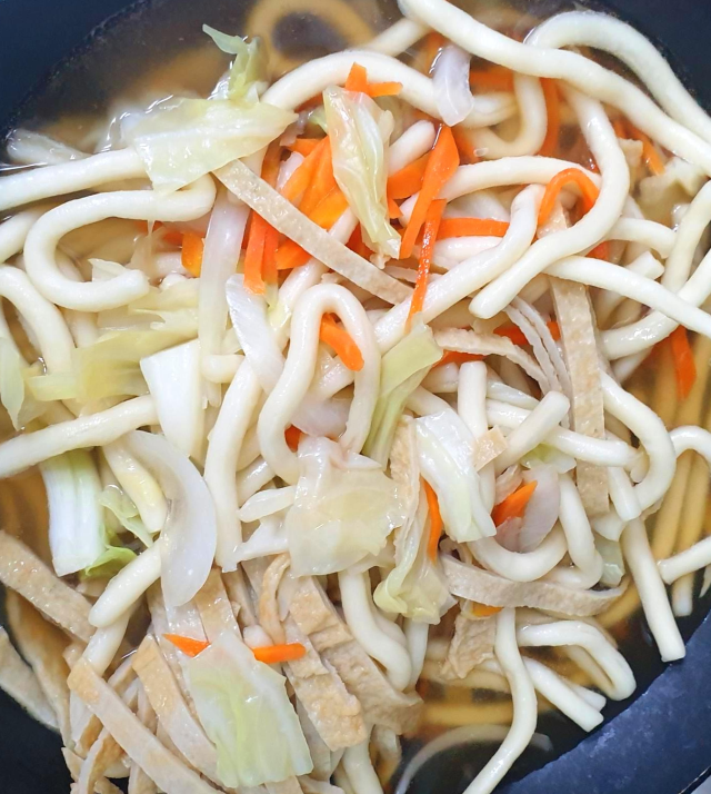 색깔이 매울것처럼보여도 처음끓일때부터 간장과 쯔유로 간을 해논상태이고 국물을 계속부어서 끓이다보면