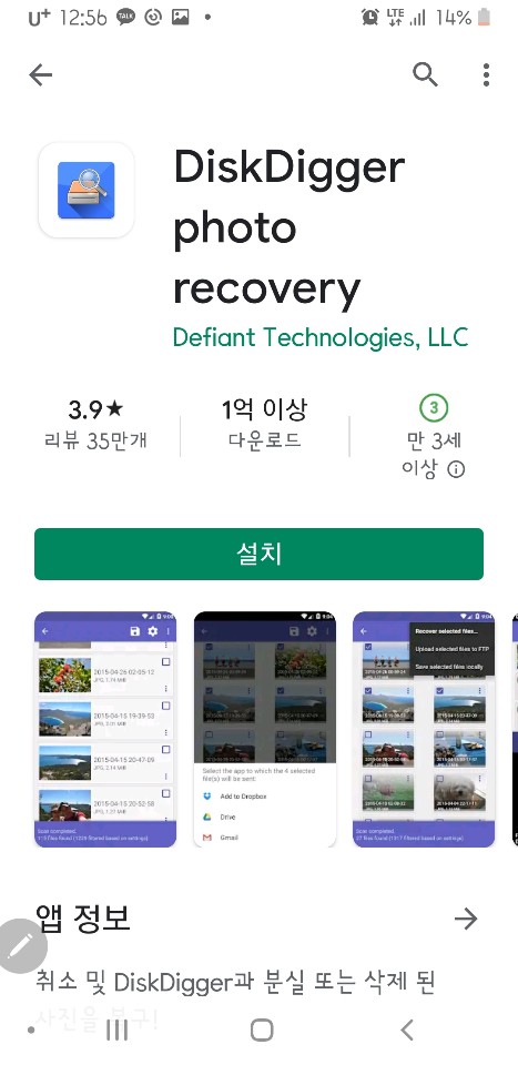 핸드폰에서 Disk Digger photo recovery 어플을 다운로드합니다.