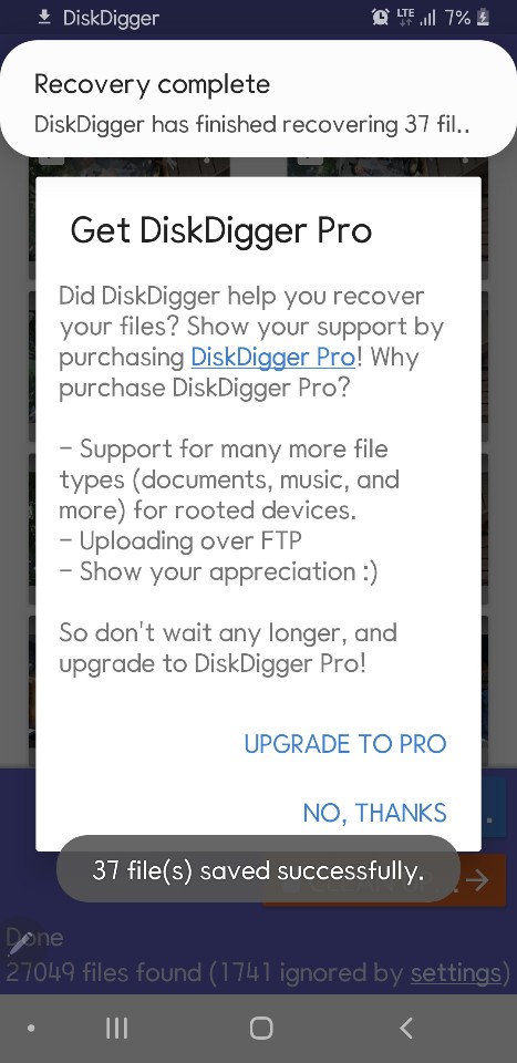 아래화면은 손으로 빨리 체크하고 바로 캡쳐를 해서 사진이 안보이지만 잠시 기다리면 복구할 사진이 떳답니다.
