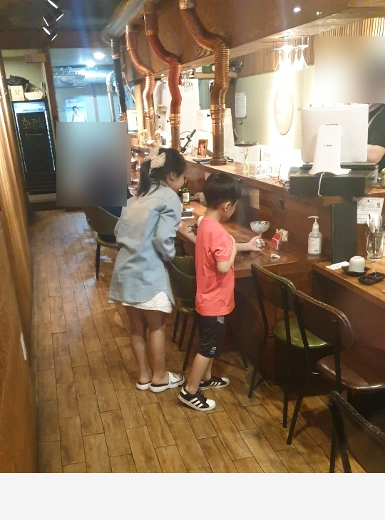 식사를 다하고 나오는길에 아이들이 사탕을 골라서 나온다고 서있네요