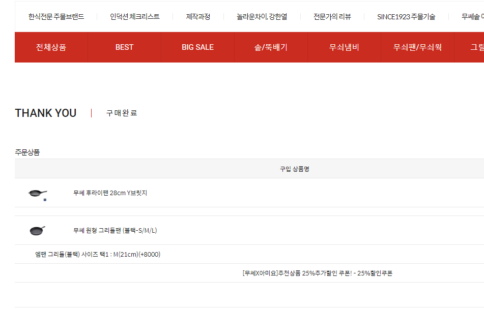 완전 심취하며 정독하게 되었고 신랑도 강제 시청하게 해서 결국 무쎄 주물팬 두개를 주문하게 되었습니다.