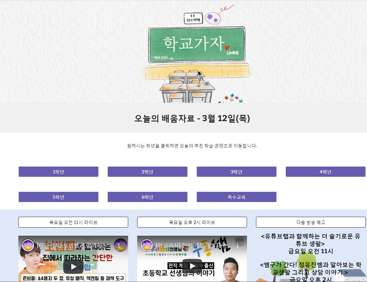 학교가자.com처럼 현직 선생님들이 제작한 온라인 학습 사이트로 이루어져 있습니다 매일매일 업데이트 되고 있으니 참고해 보시기 바랍니다