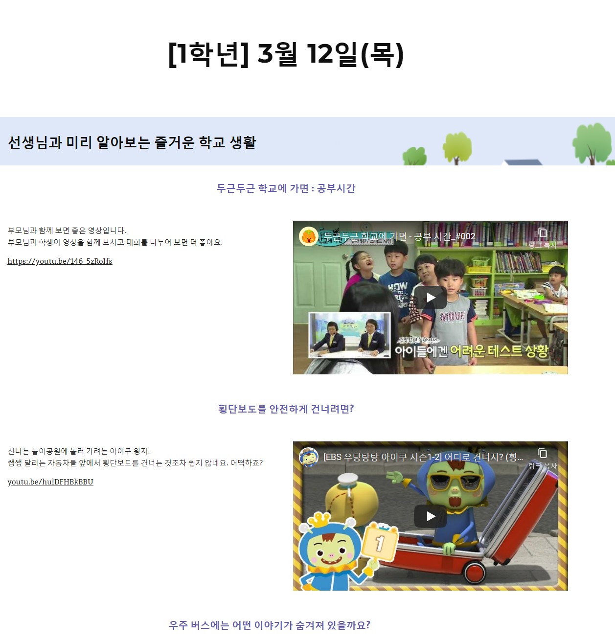아래링크들을 참고 하셔서 아이의 맞는 학습방법을 선택해 학교공부 하시길 바랍니다