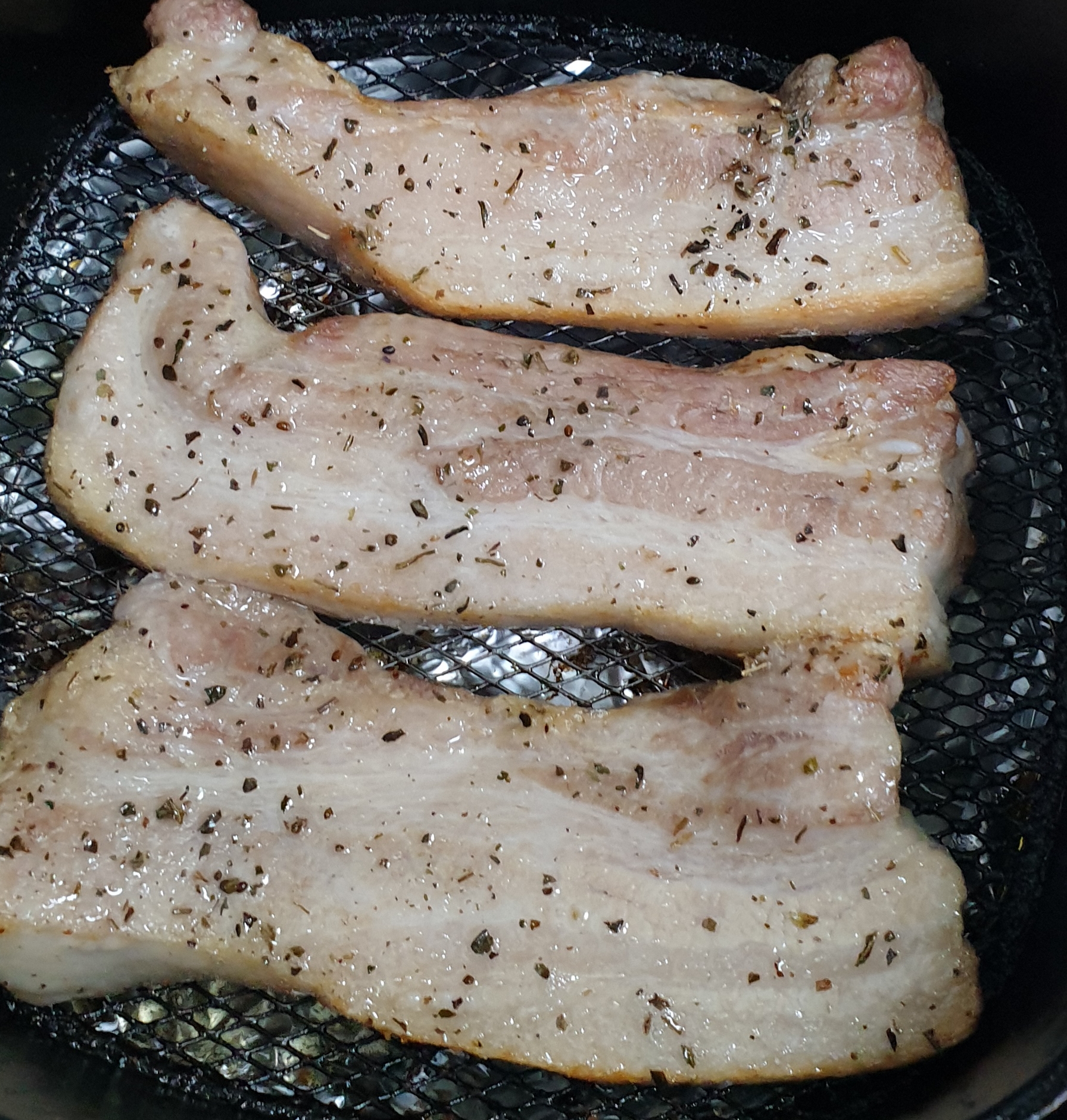 비계가 많아보여도 에어후라이로 삼겹살을 구우면 많이 줄어들어서