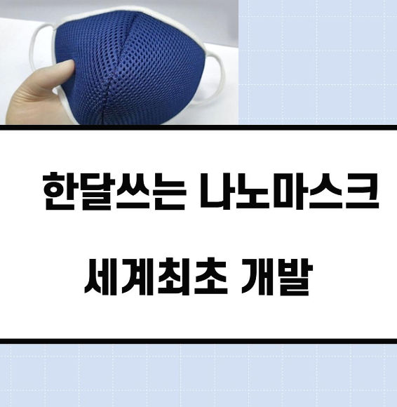 세계최초로 카이스트 신소재 공학과 김일두 교수님의 연구팀에서 한달동안 쓸수있는 나노섬유마스크를 개발했다고 합니다