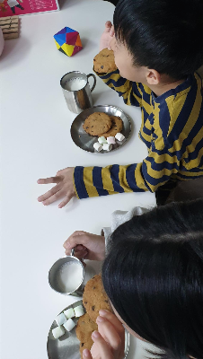 아이들이 도란도란 우유한잔에 내친김에 숨겨논 마시멜로까지 서비스로 담아내니 둘다 딱 두개 먹고 배가 부르다고 합니다