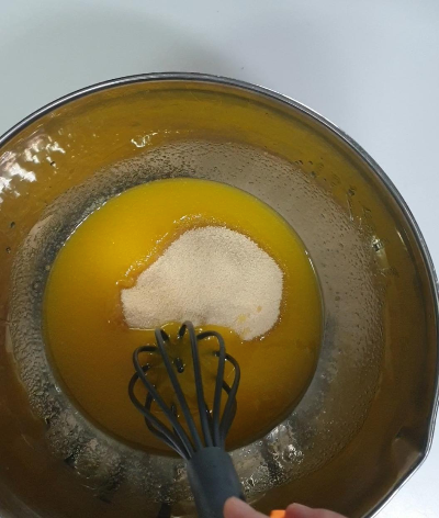 1.먼저 믹싱볼에 계란노른자 3개를 분리해서 저어줍니다