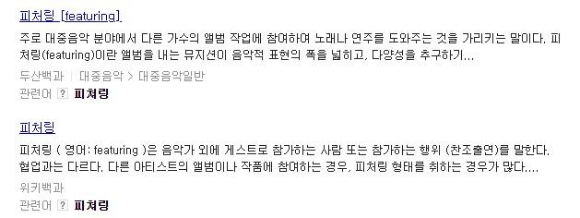 그래서 featuring 퓨처링을 줄여서 feat이라고 쓴다는것을