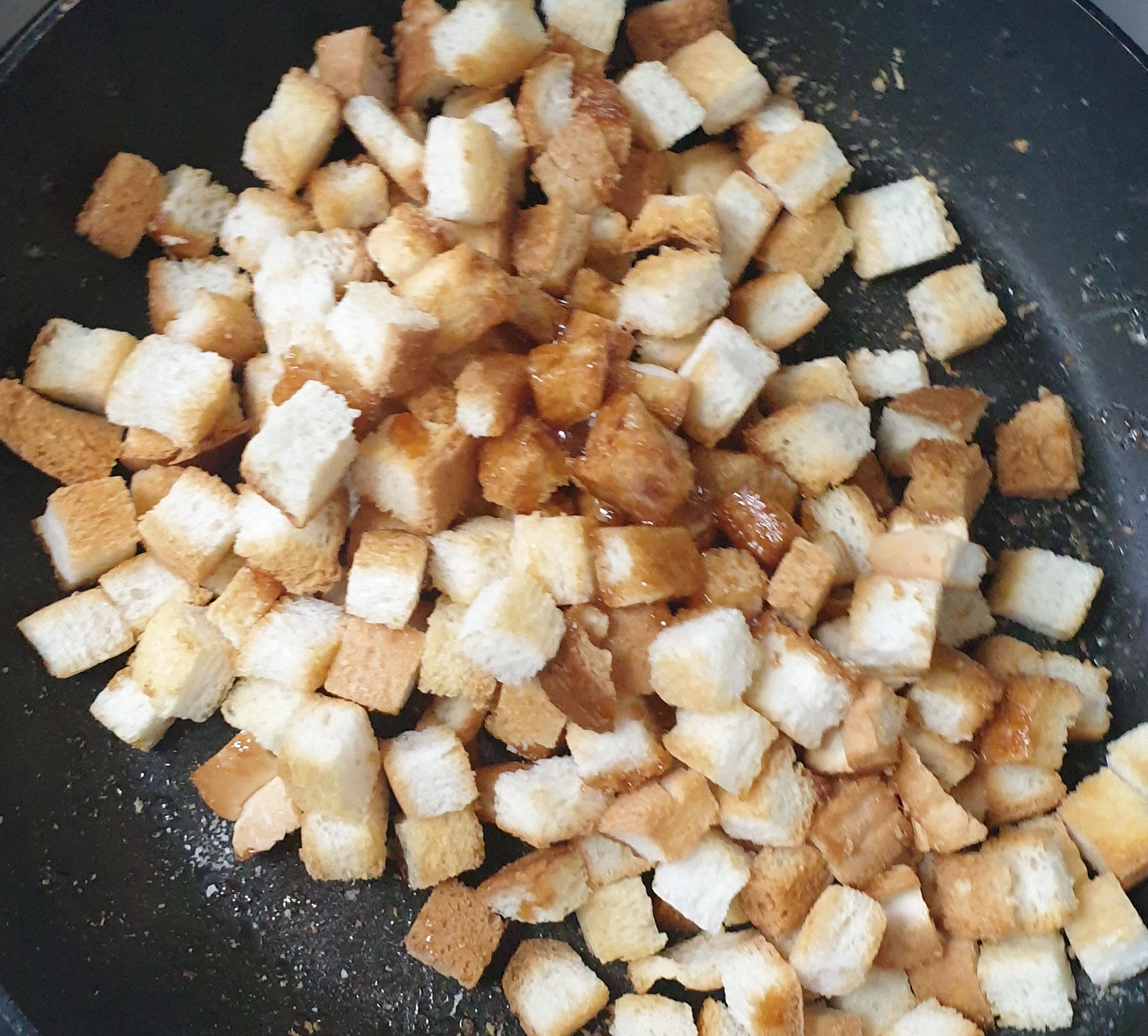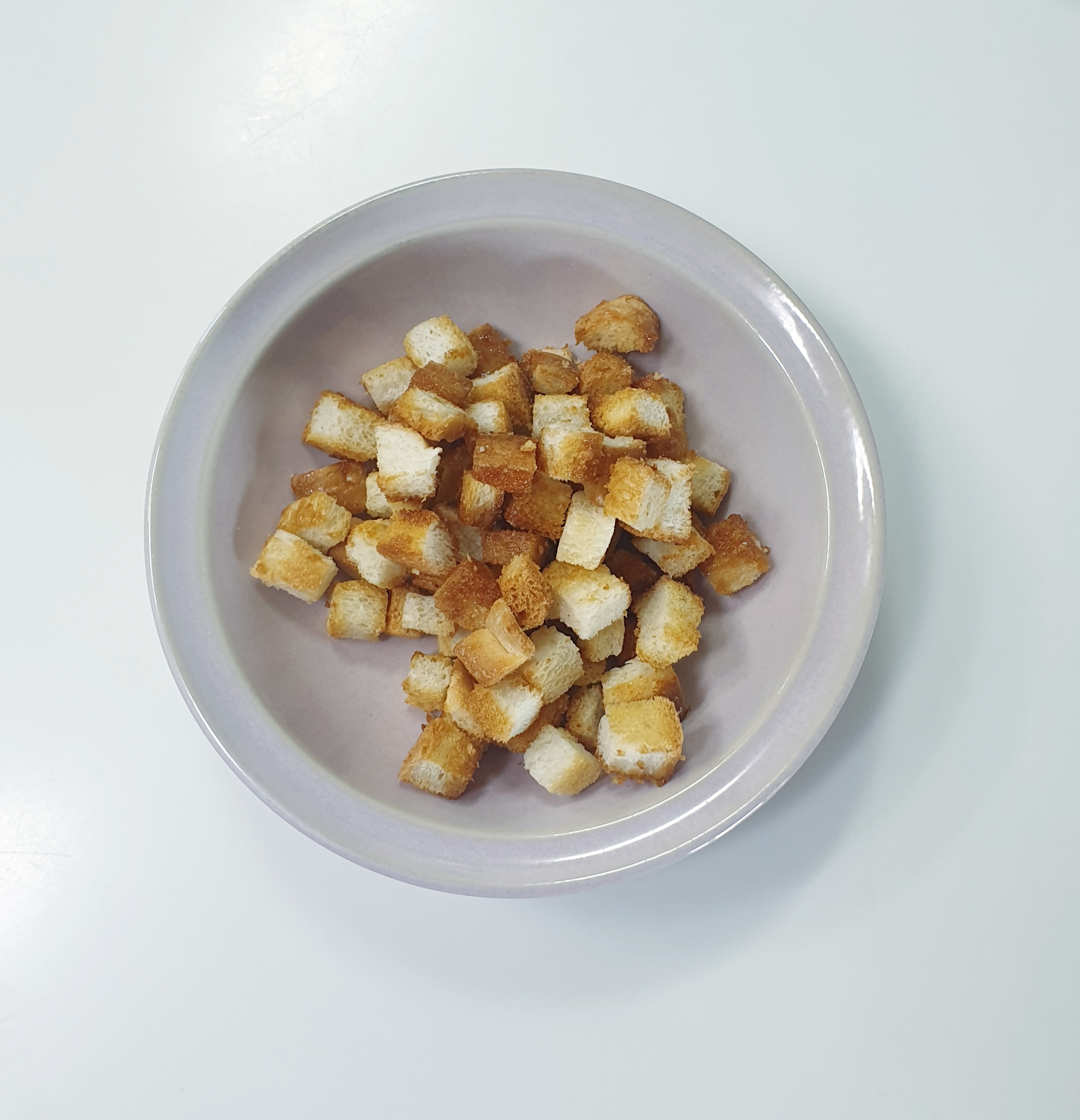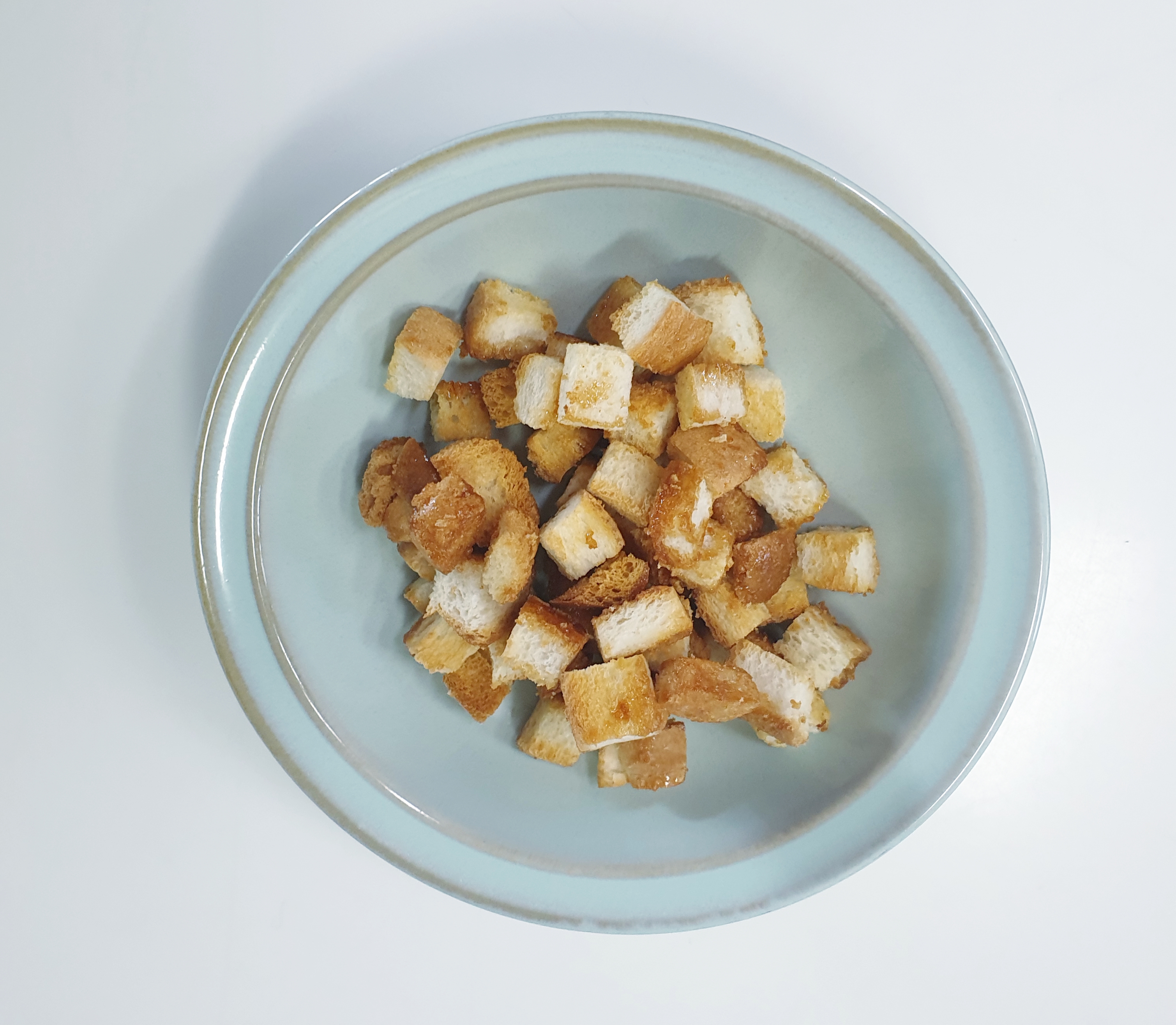 식빵을 사놓으면 식빵끝부분은 버리지 않고 잘게 잘라 냉동실에 넣고 샐러드나 스프같은데 크루통을 만들어 넣어주면 바삭바삭 과자같은 식감이라 요리의 맛을 더 살려 줄수 있답니다