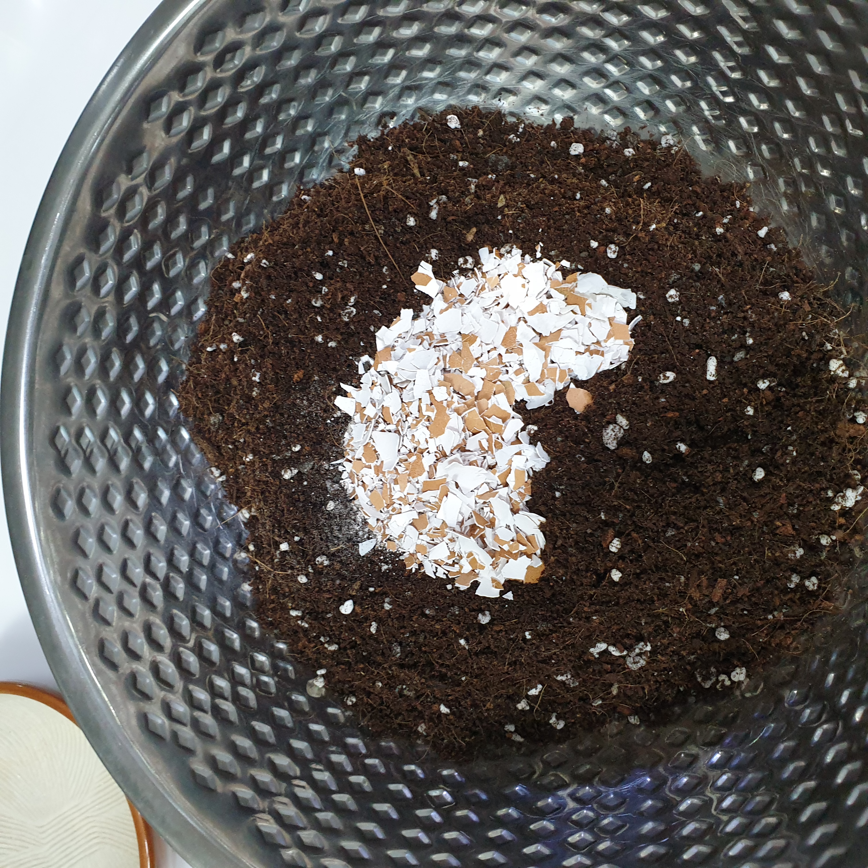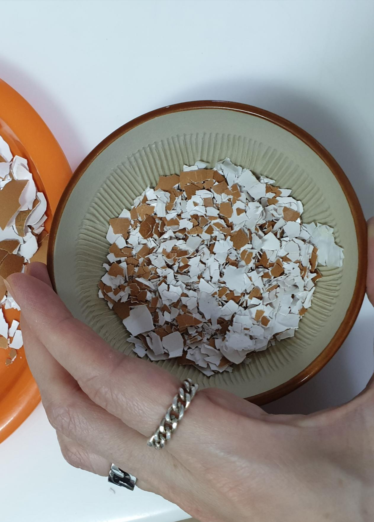 껍질이 마르면 손으로도 잘게 부셔지고 너무잘게 부수지 않으셔도 됩니다