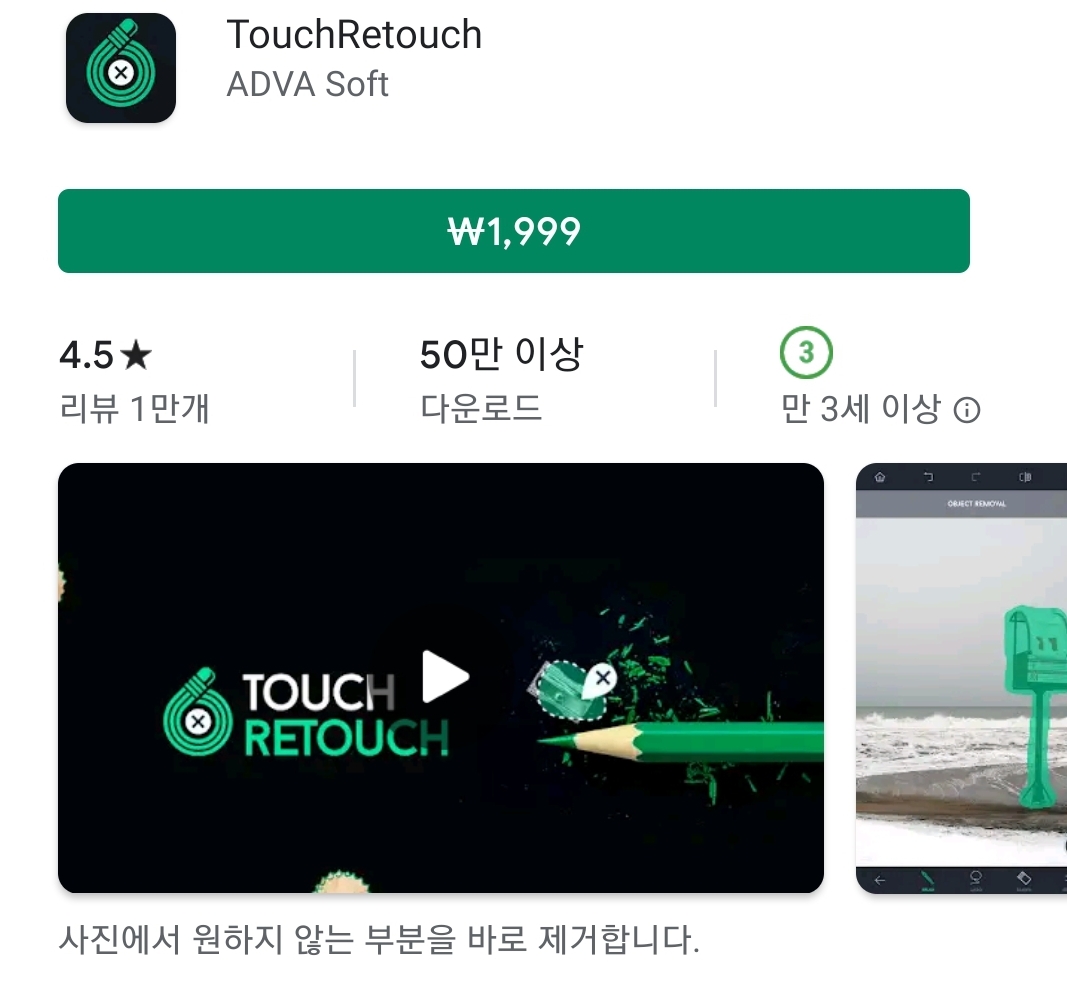 제가 다운받은 어플은 터치 리터치라는 어플이고 유료로 결제 했습니다