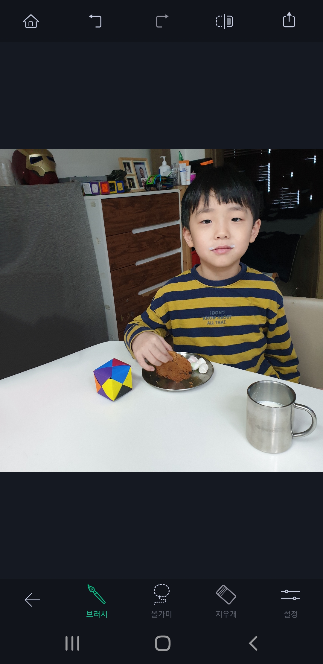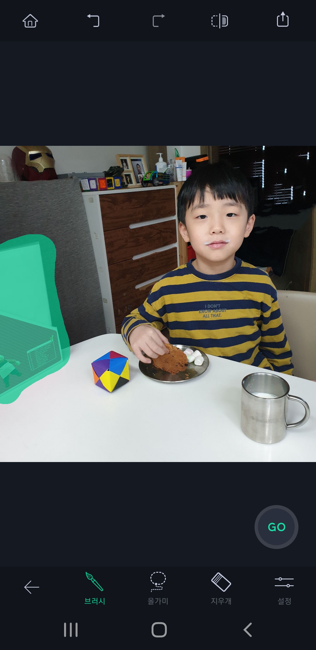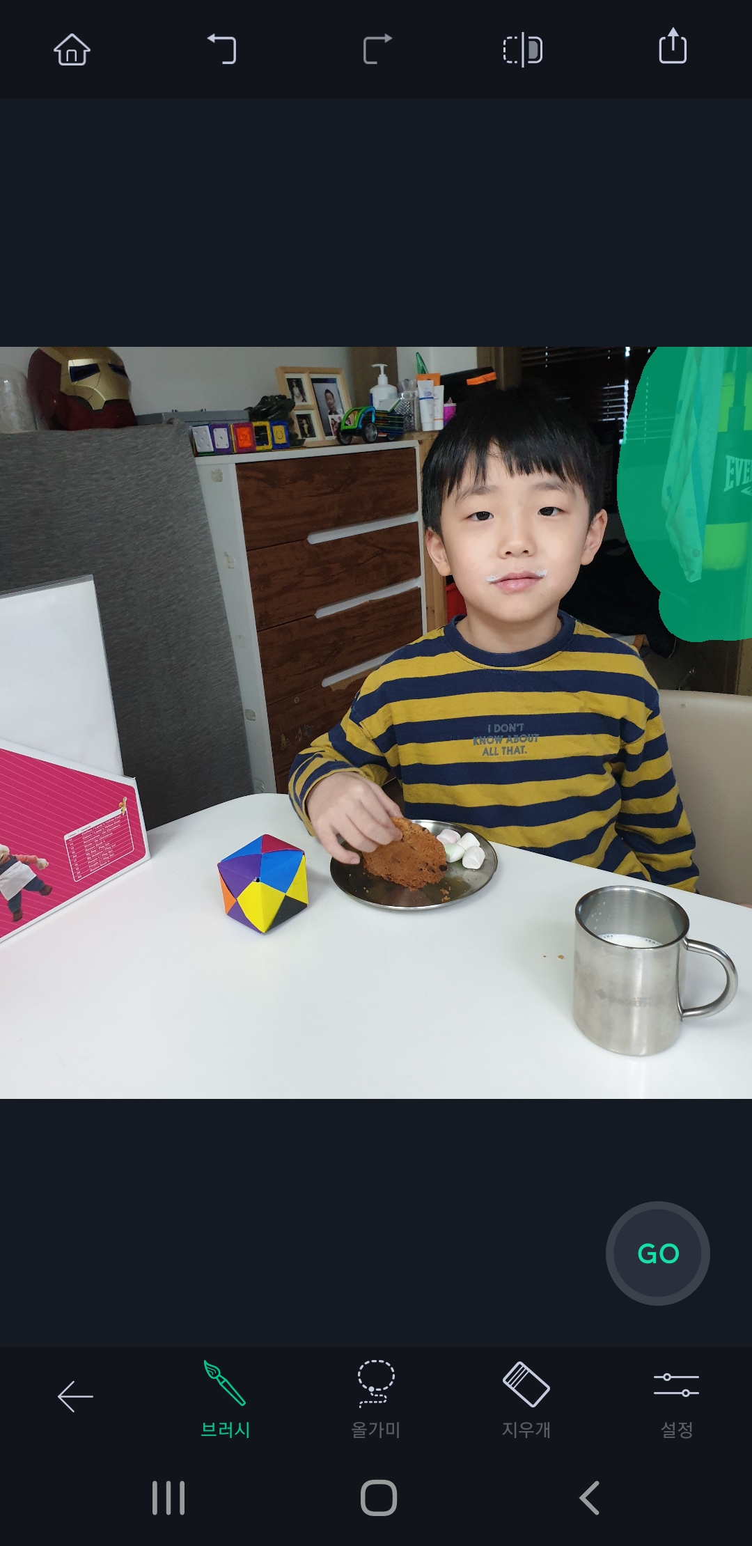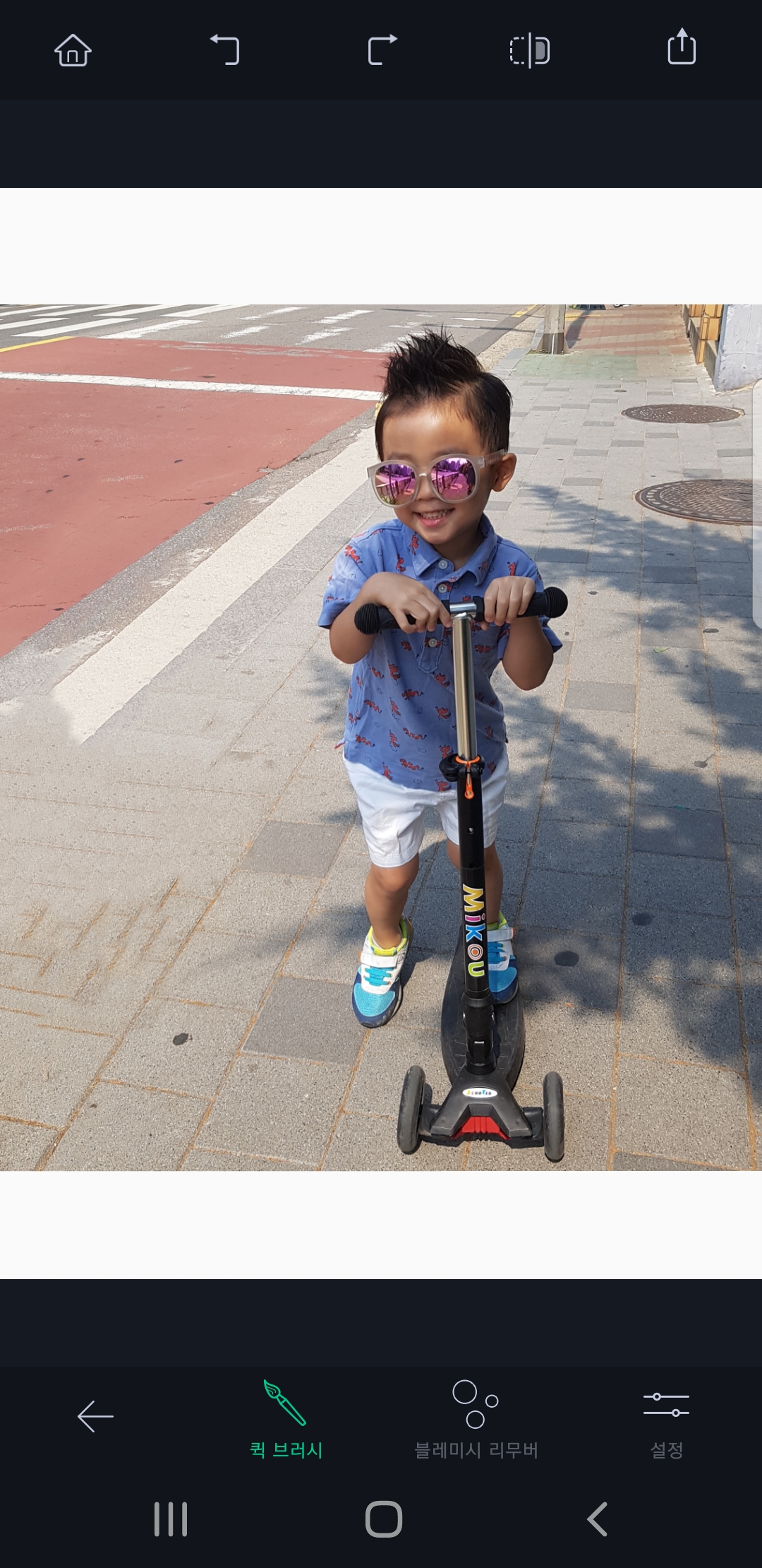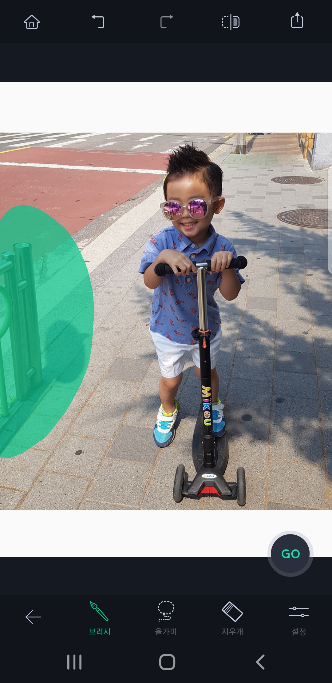 그리고 브러시를 선택이 되면 손가락으로 쓱쓱 빠르게 지워주면 바로 사진에 있는 배경이 사라집니다
