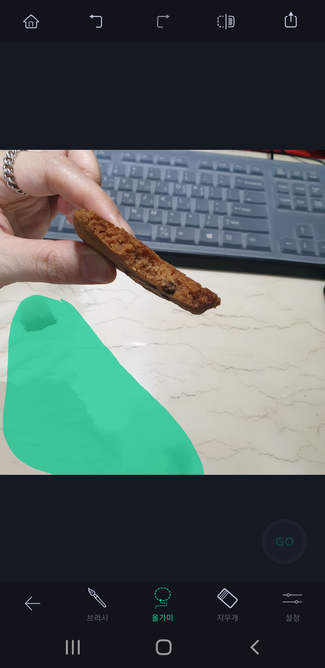 사진배경 지울때마다 조금씩 달라지는데요 뒤로가기를 했다가 약하게 손가락으로 쓸어봤다가 하시면서 방법을 익히세요