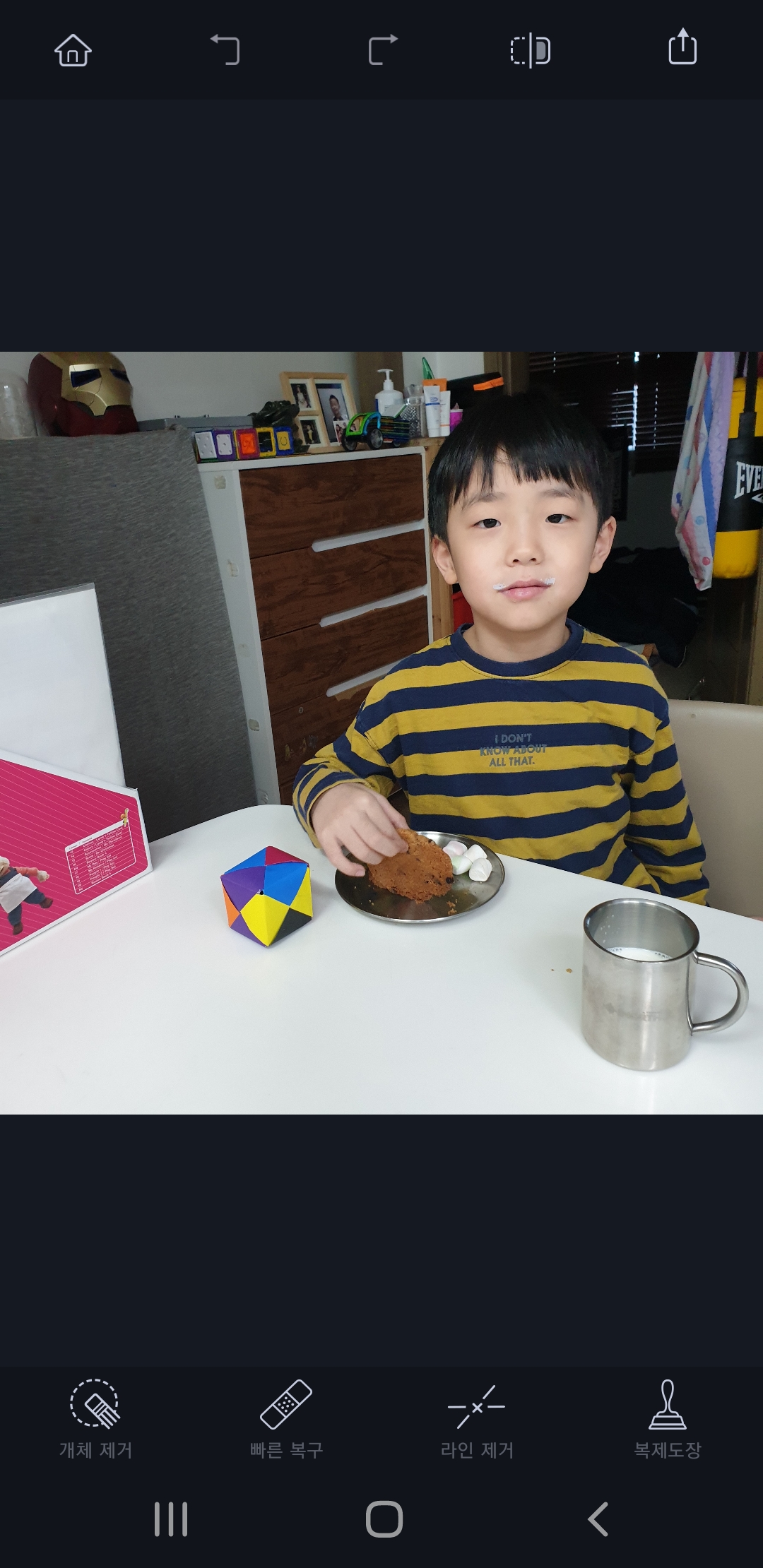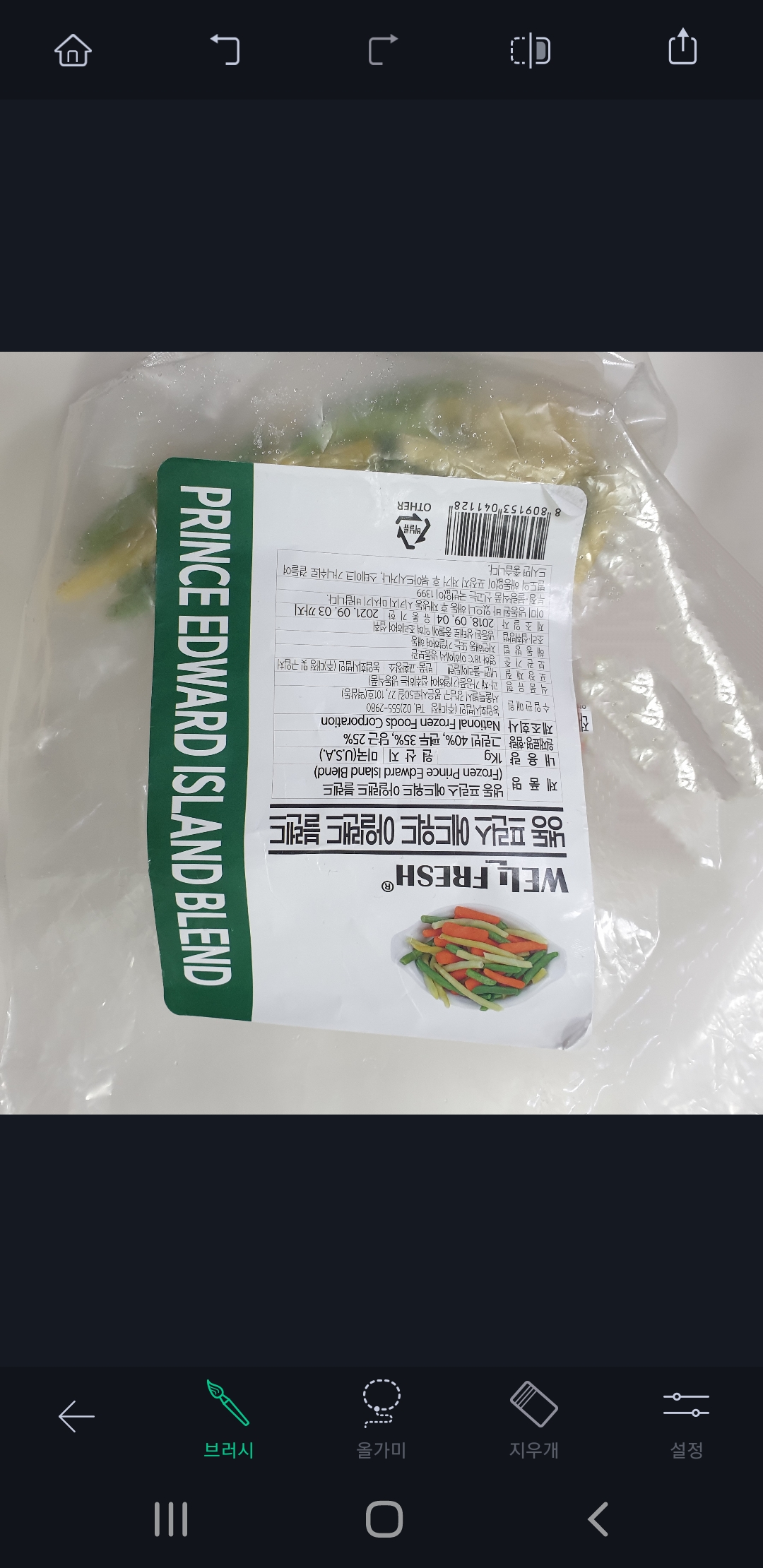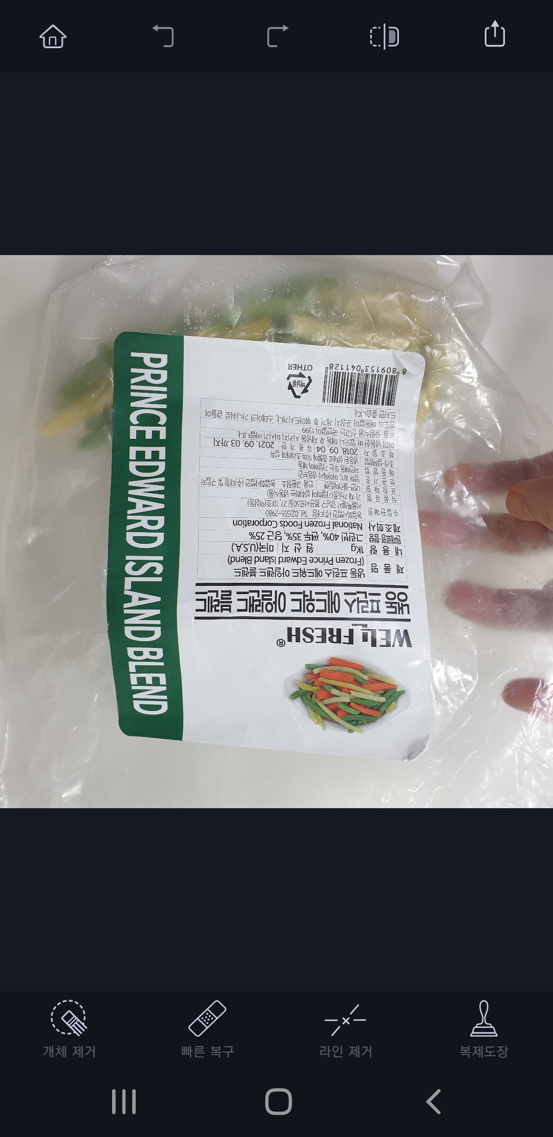 위와 같은방법으로 냉동실에서 야채를 꺼내고 손가락이 나온사진을 지우기 1회 지우기의 결과물입니다