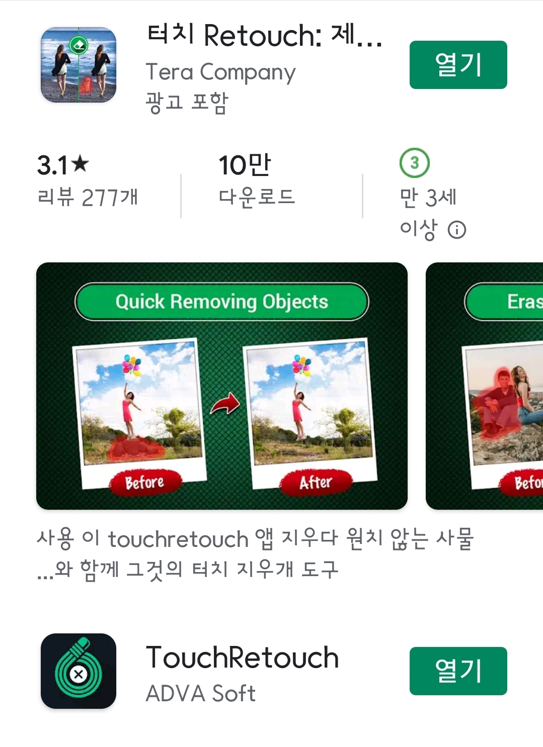 제가 다운받은 어플은 터치 리터치라는 어플이고 유료로 결제 했습니다