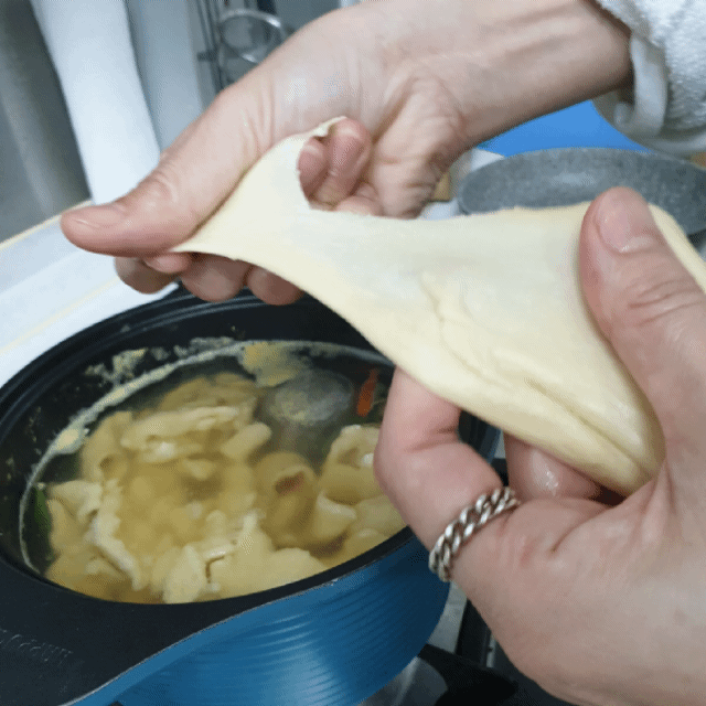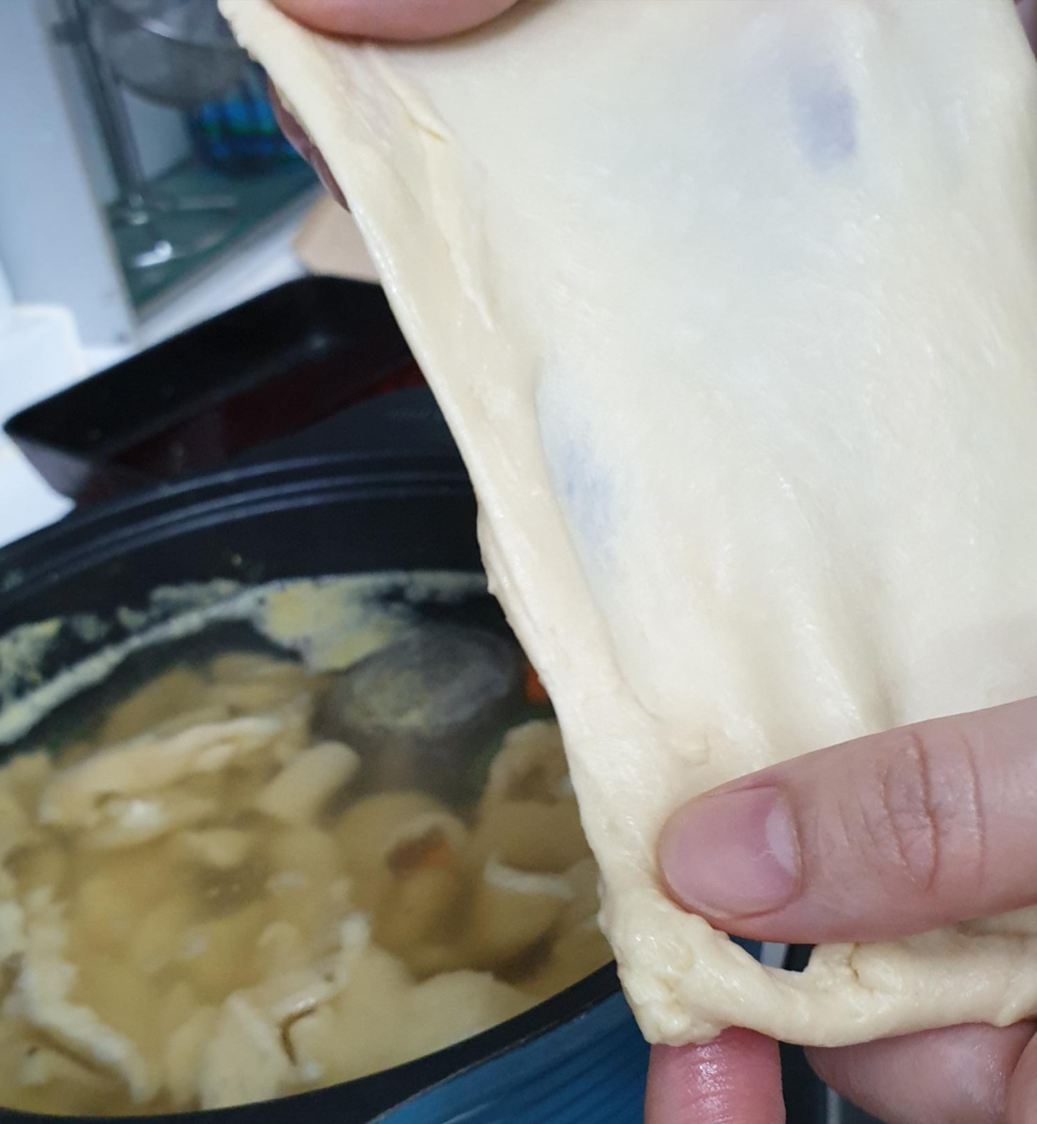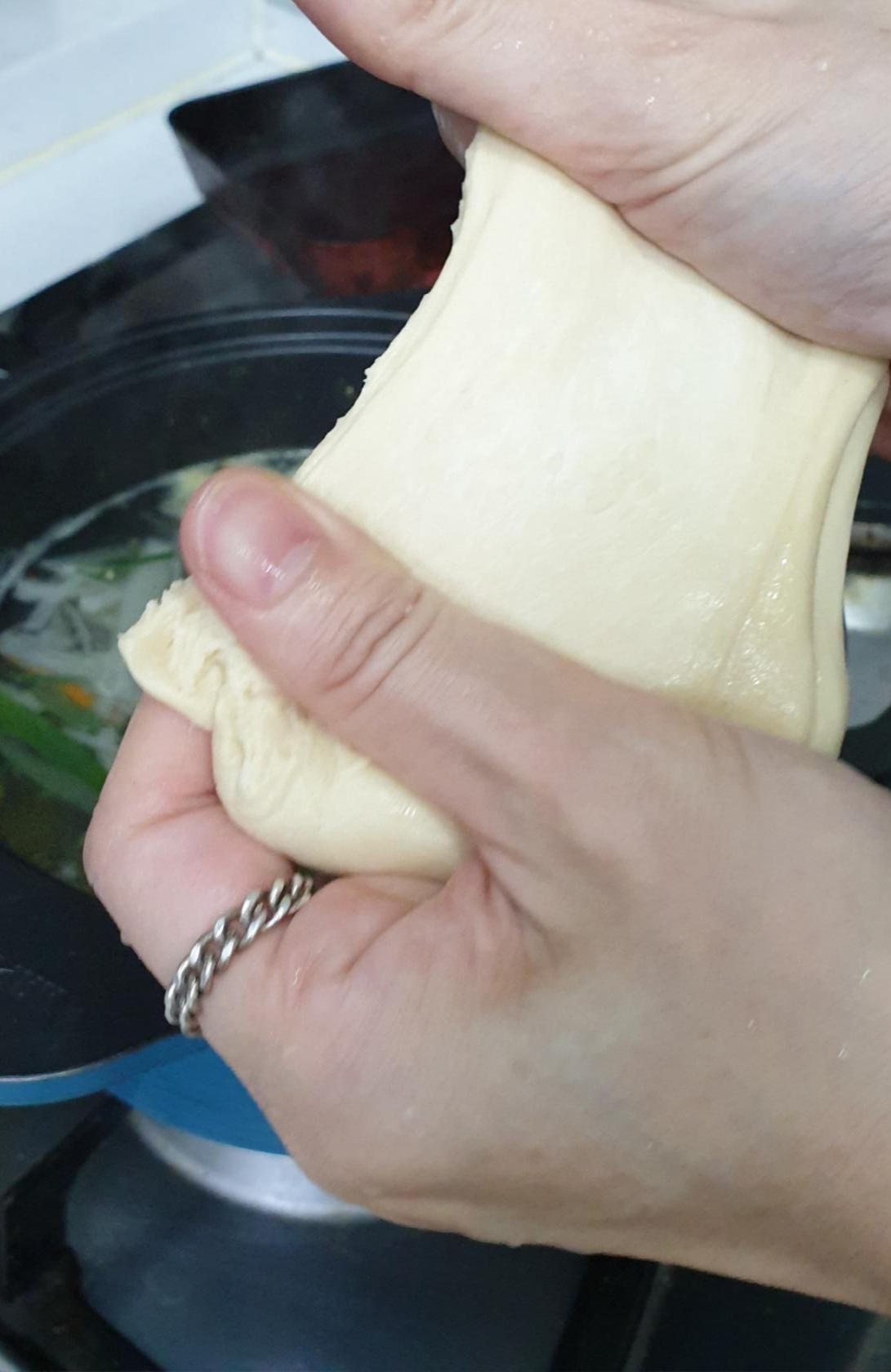 쭉늘려서 떼어 넣을때도 수제비 두께가 굉장히 두꺼워질수 있답니다