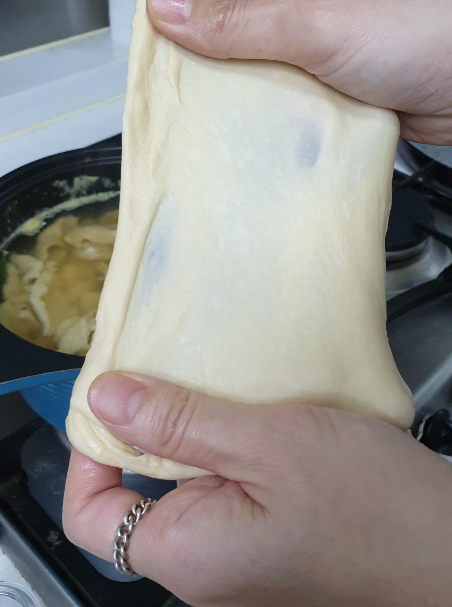 하루전날 반죽을 만들어 미리 숙성해 놓으면 최대한 얇게 늘려서 넣어도 잘찢어지지않고 먹을때 식감도 쫄깃쫄깃 하답니다