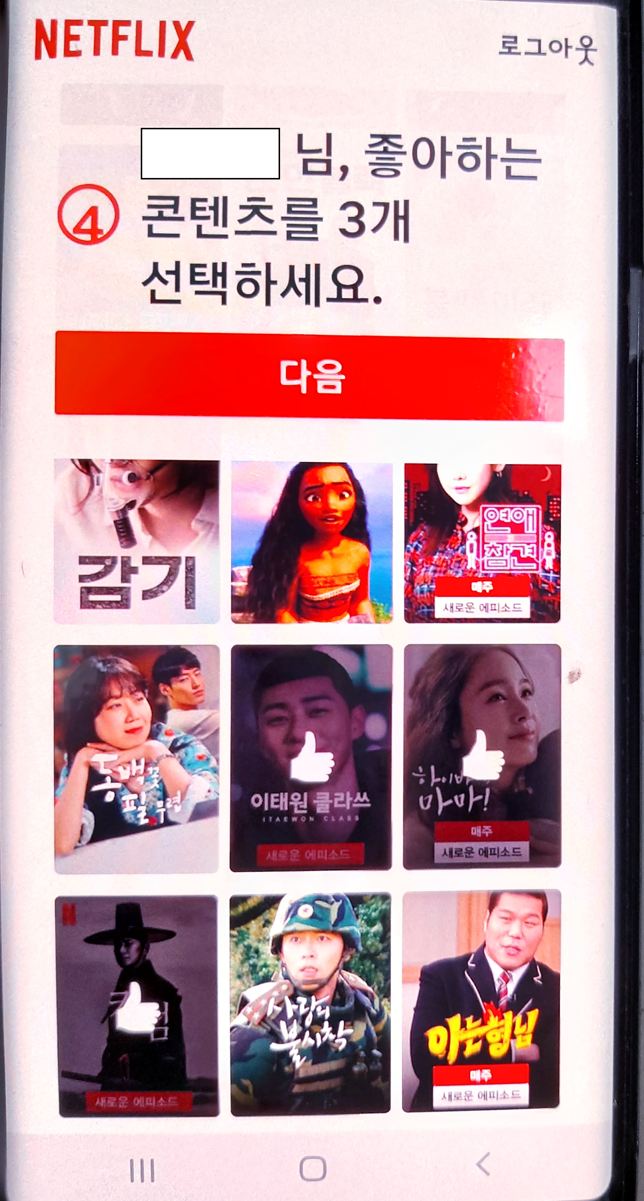 좋아하는 콘텐츠를 선택하라고 해서 저는 보고싶었던 킹덤 이태원클라쓰 하이바이마마를 선택했습니다