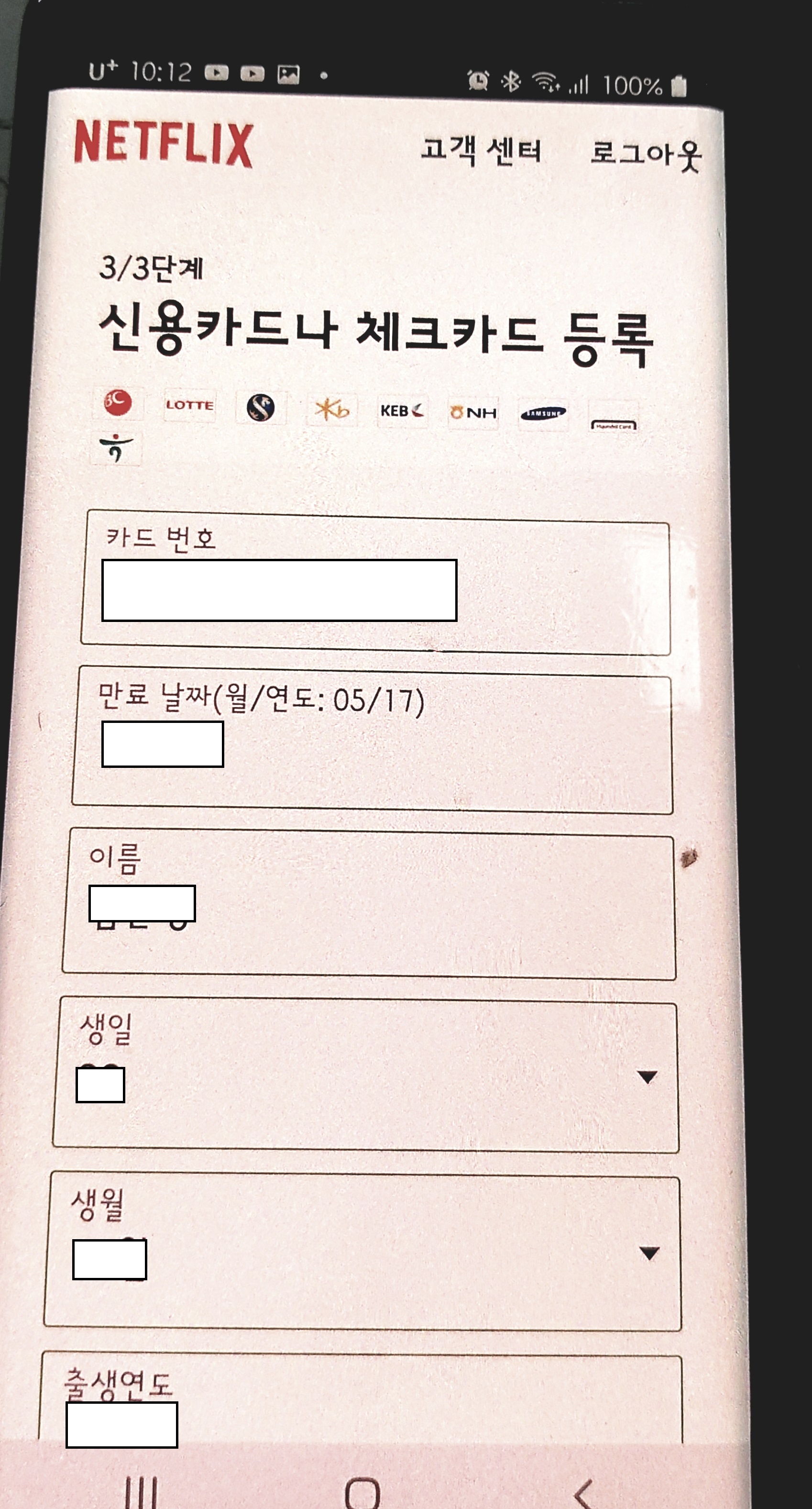 계정 등록후 결제 정보등록을 하러 다음창으로 이동합니다